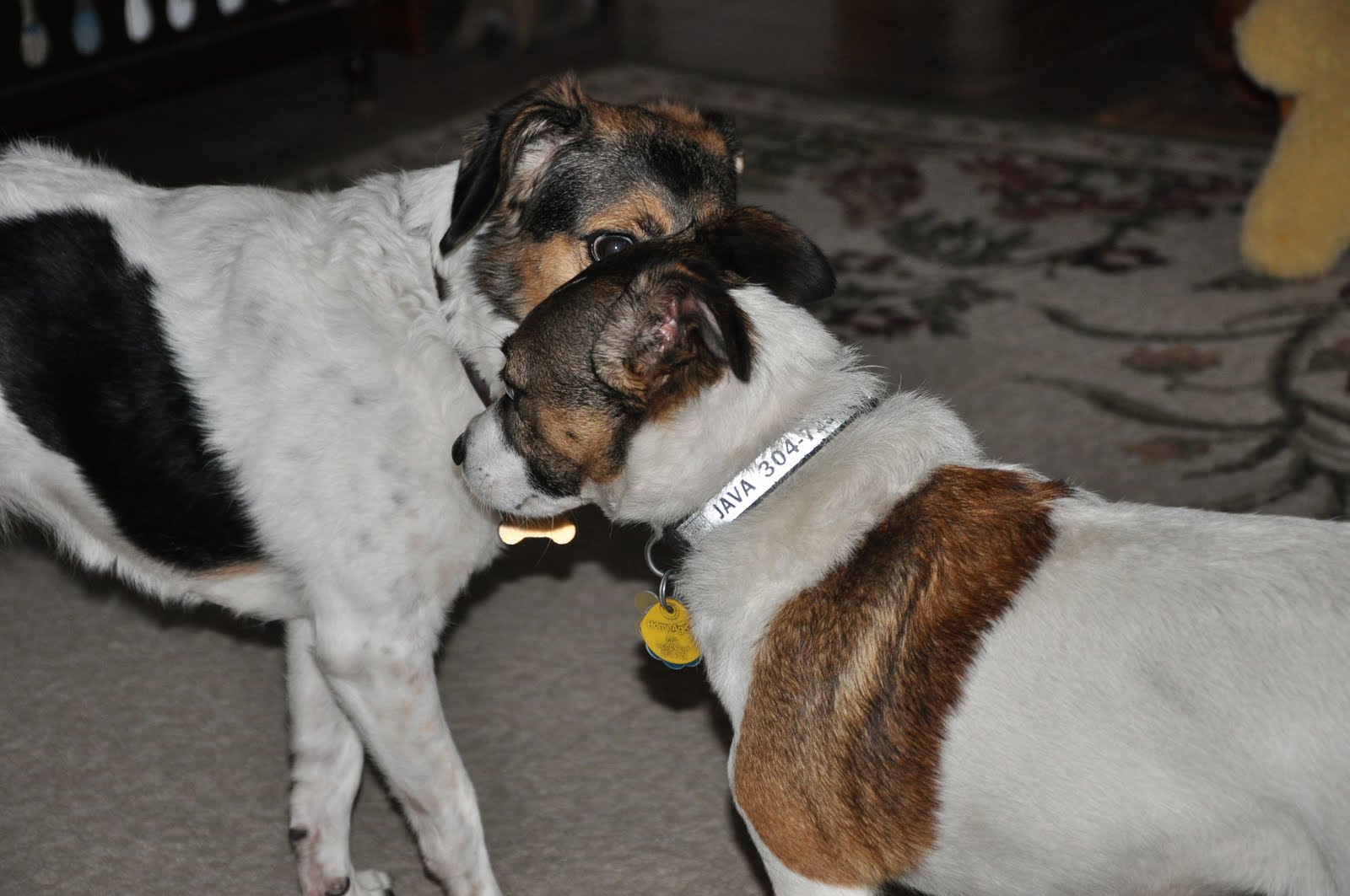 Nanny’s =) It’s right on the way to the beach so we stopped and spent the evening with her. Java and Jazzy had some fun (of course they had to get acquainted first, lol)