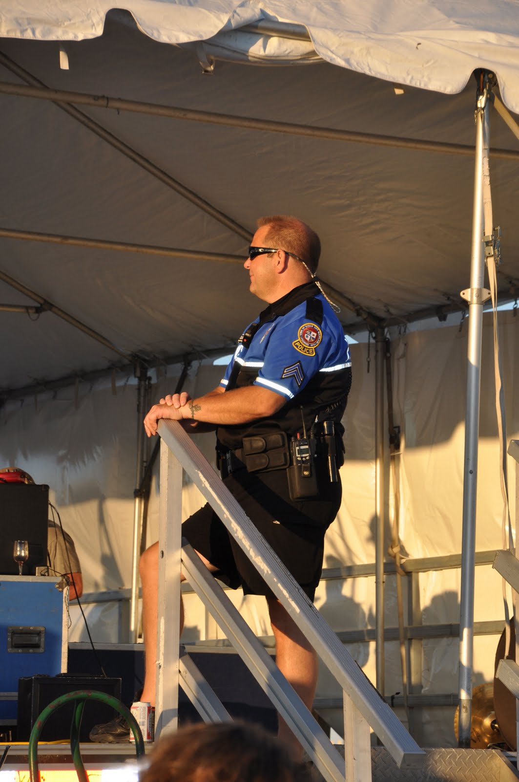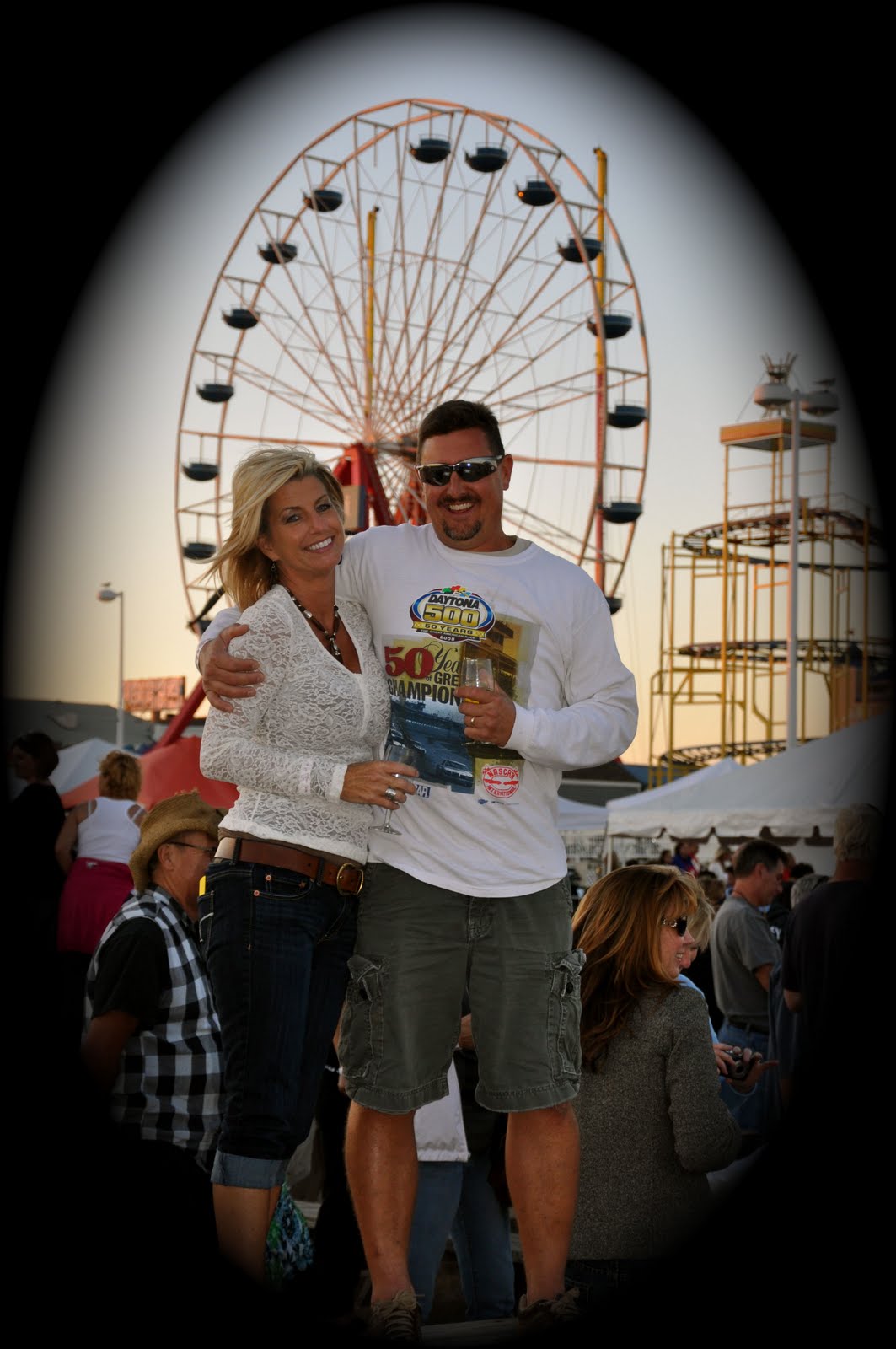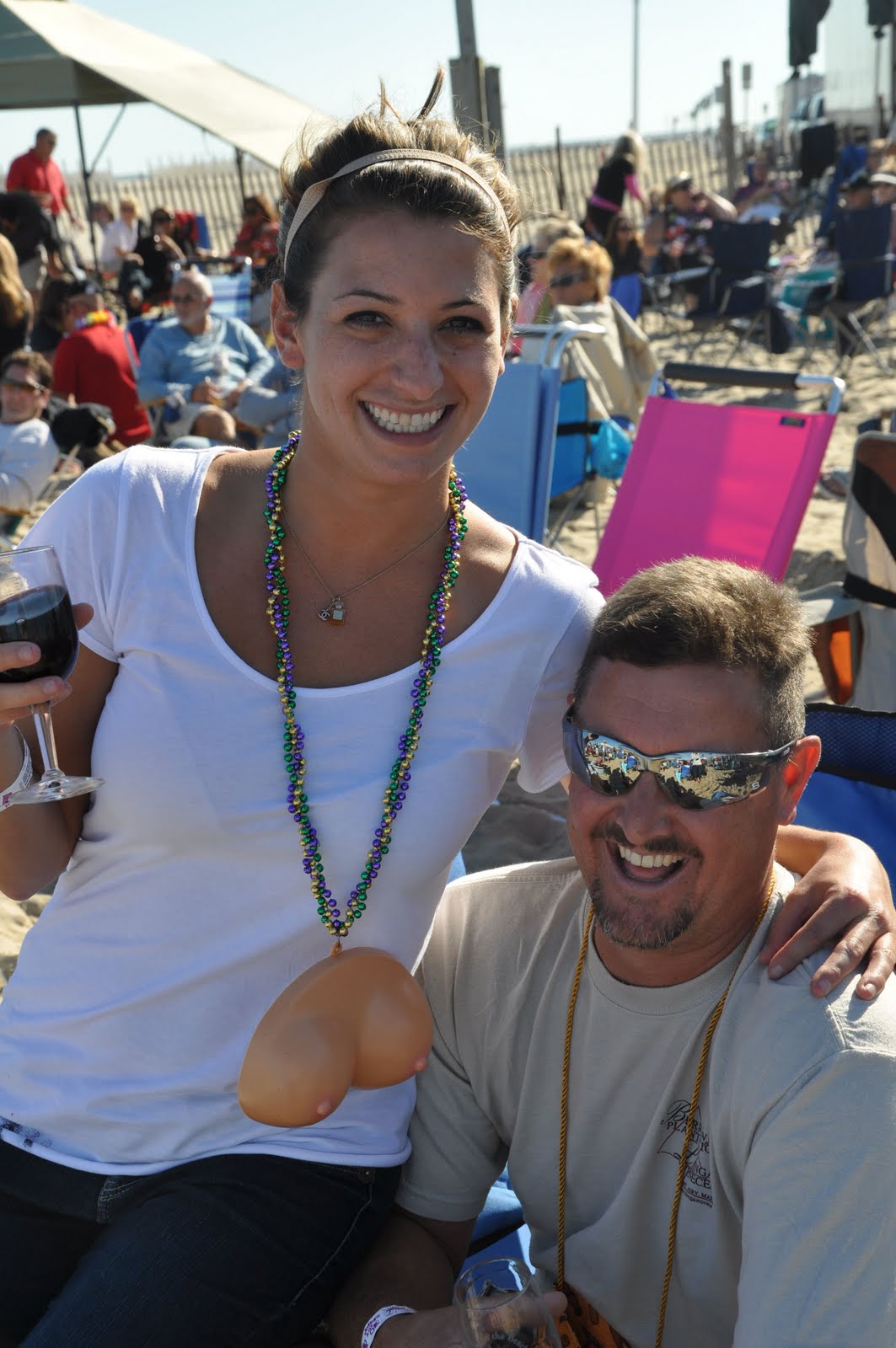 While Ronnie went to get our chairs, I chatted with a couple of young ladies that were they having a great time. One even had some beads with ‘boobs’ around her neck =) I decided to ask one of them if she would take our picture. Of course she said “yeah” and followed me to the chairs. Once there, she plopped right down on Ronnie’s lap and smiled – ready for the picture, lol! Obviously she misunderstood but it was all in good fun so I snapped the picture –