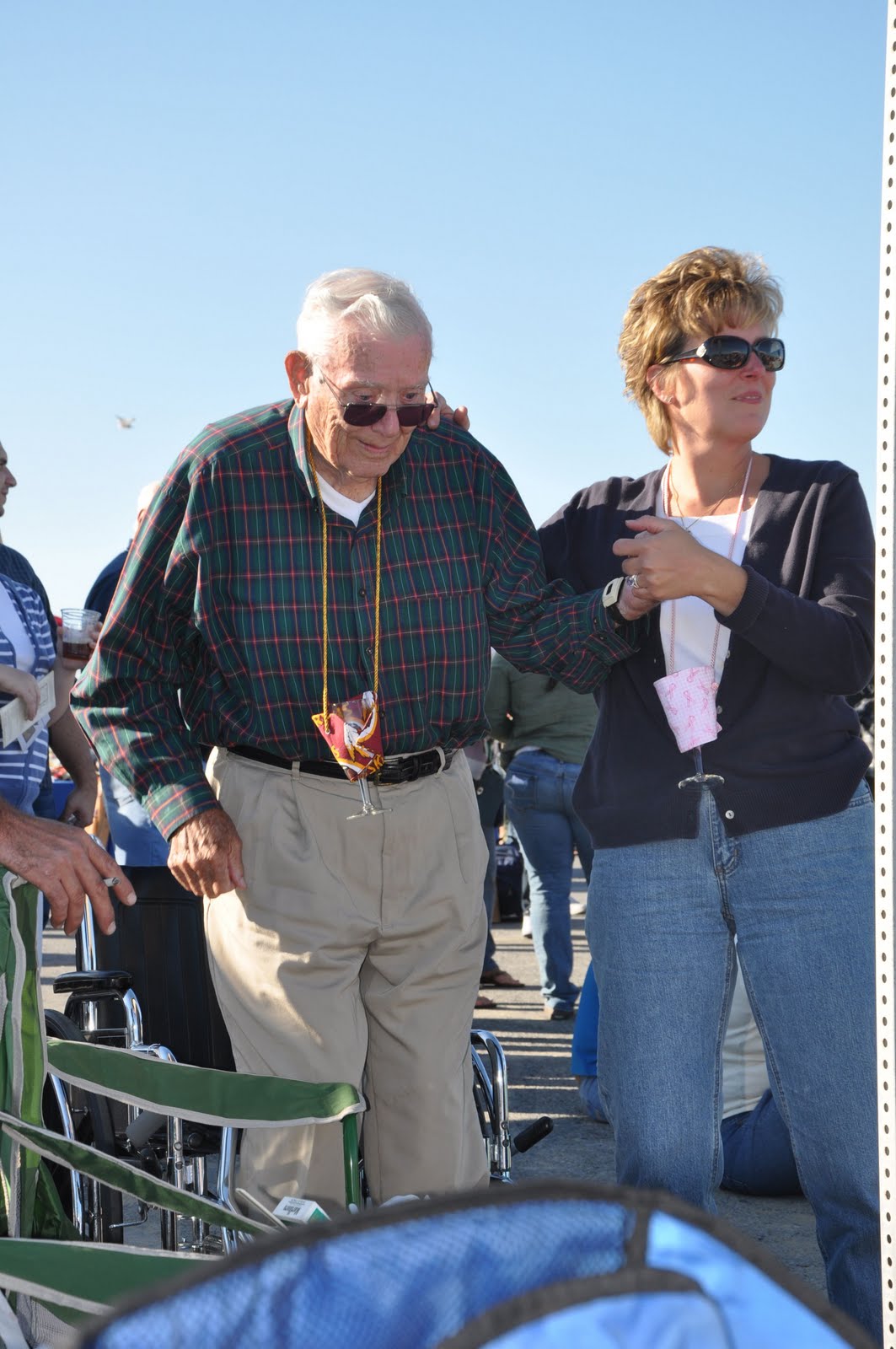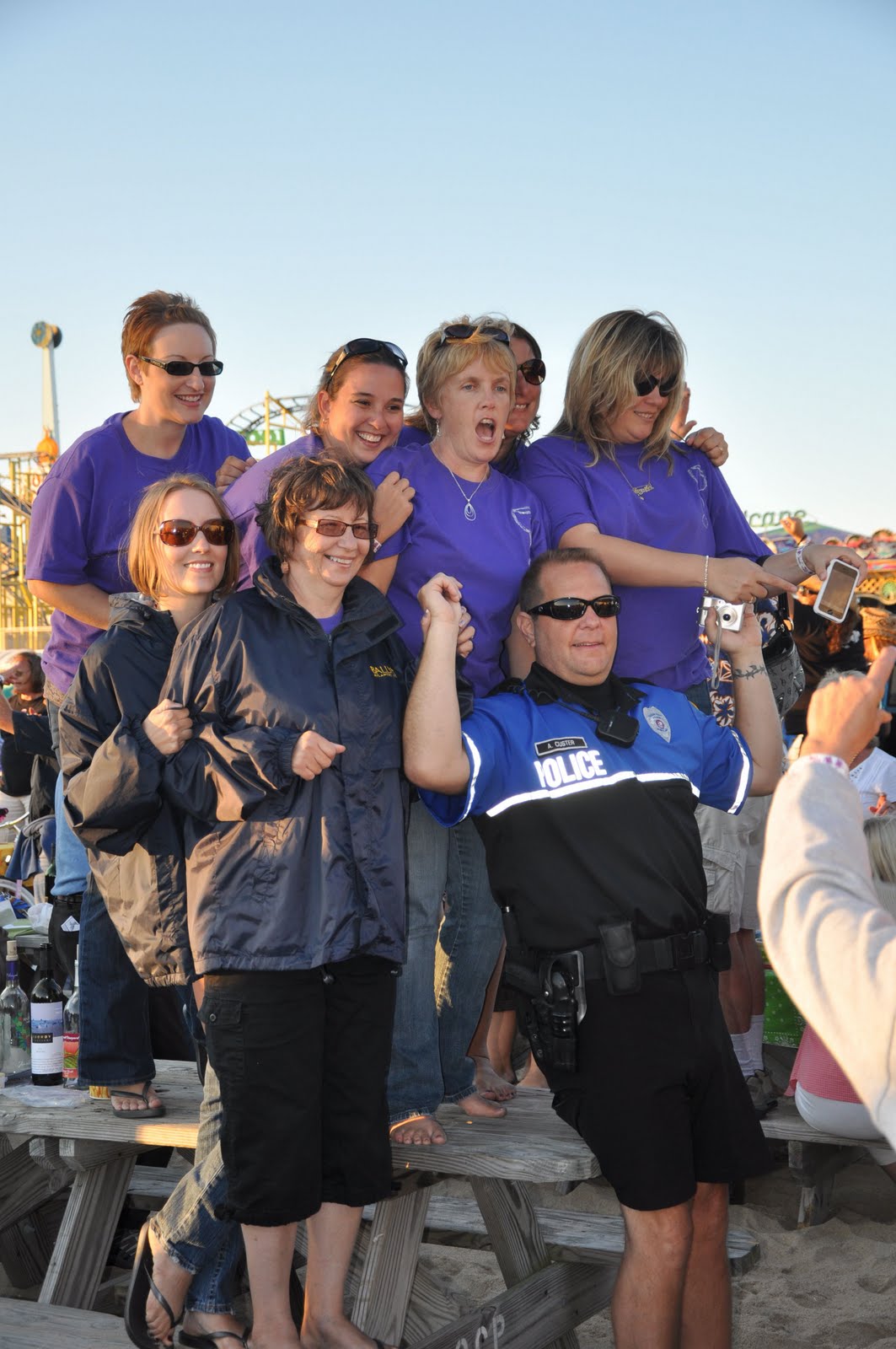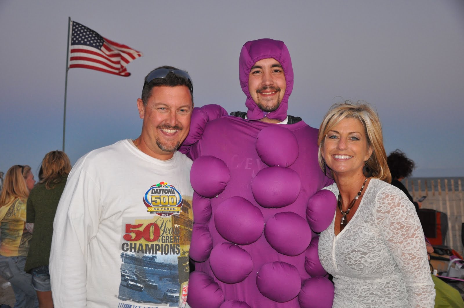 While Ronnie went to get our chairs, I chatted with a couple of young ladies that were they having a great time. One even had some beads with ‘boobs’ around her neck =) I decided to ask one of them if she would take our picture. Of course she said “yeah” and followed me to the chairs. Once there, she plopped right down on Ronnie’s lap and smiled – ready for the picture, lol! Obviously she misunderstood but it was all in good fun so I snapped the picture –