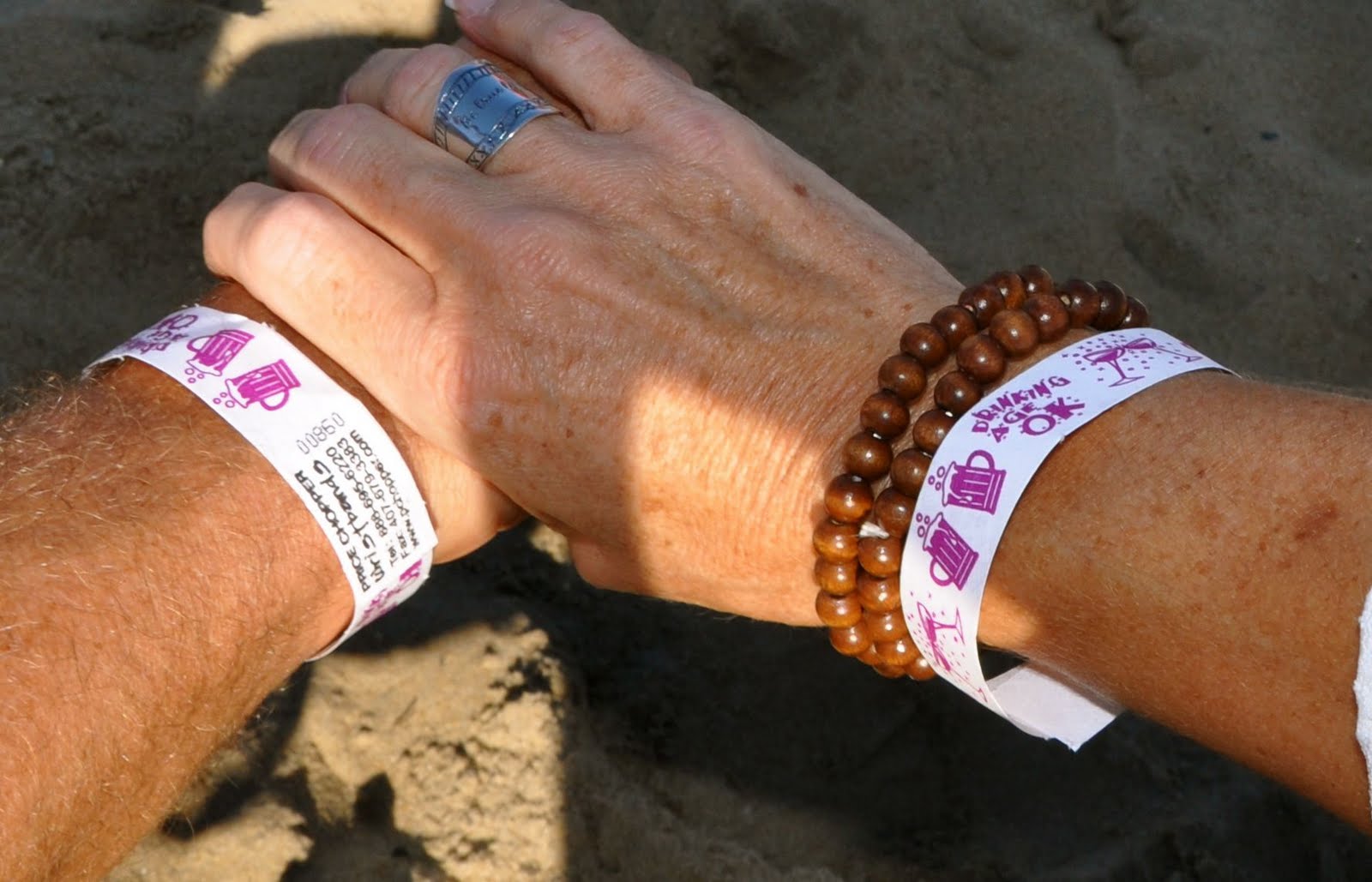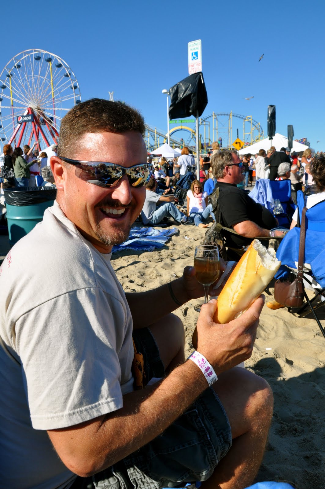 Once inside we followed the wine trail around the outside perimeter. Tasting, marking our sheets and choosing our favorites. We purchased a chilled bottle from a New York winery and took it to the sand.
