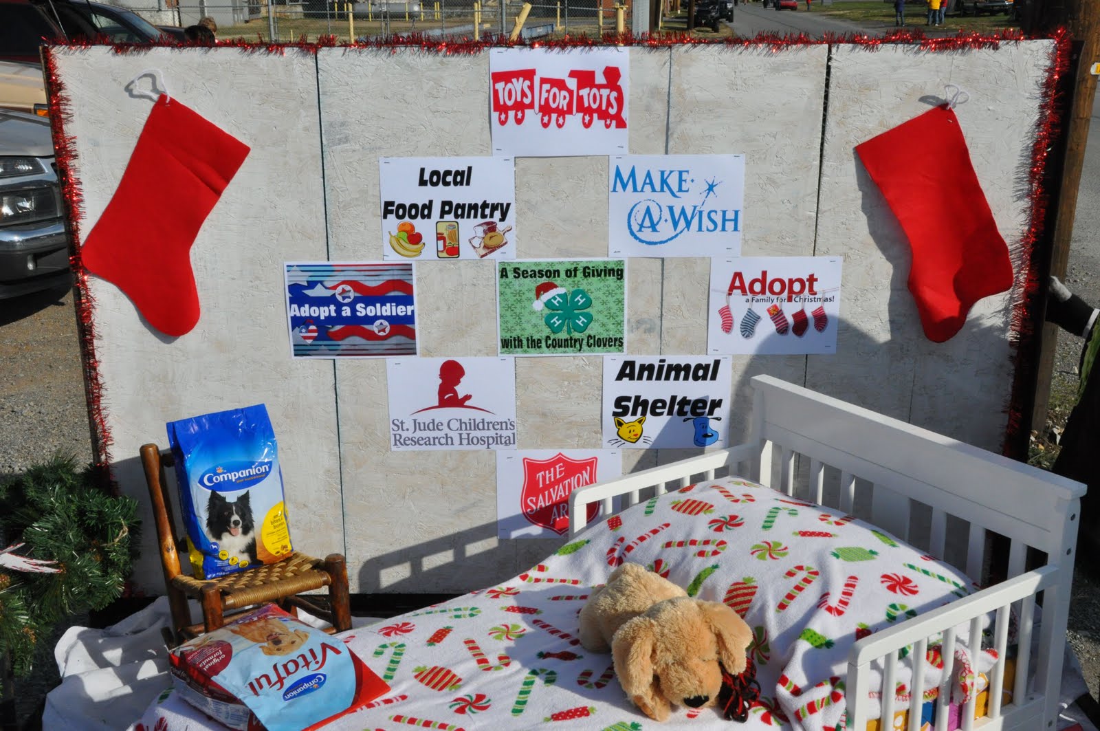 This year’s parade theme was “A Season of Giving” so the 4H group combined the Salvation Army, Toys for Tots, St. Jude, Make a Wish, our local Animal Shelter and Food Pantry to make one GREAT float =) –