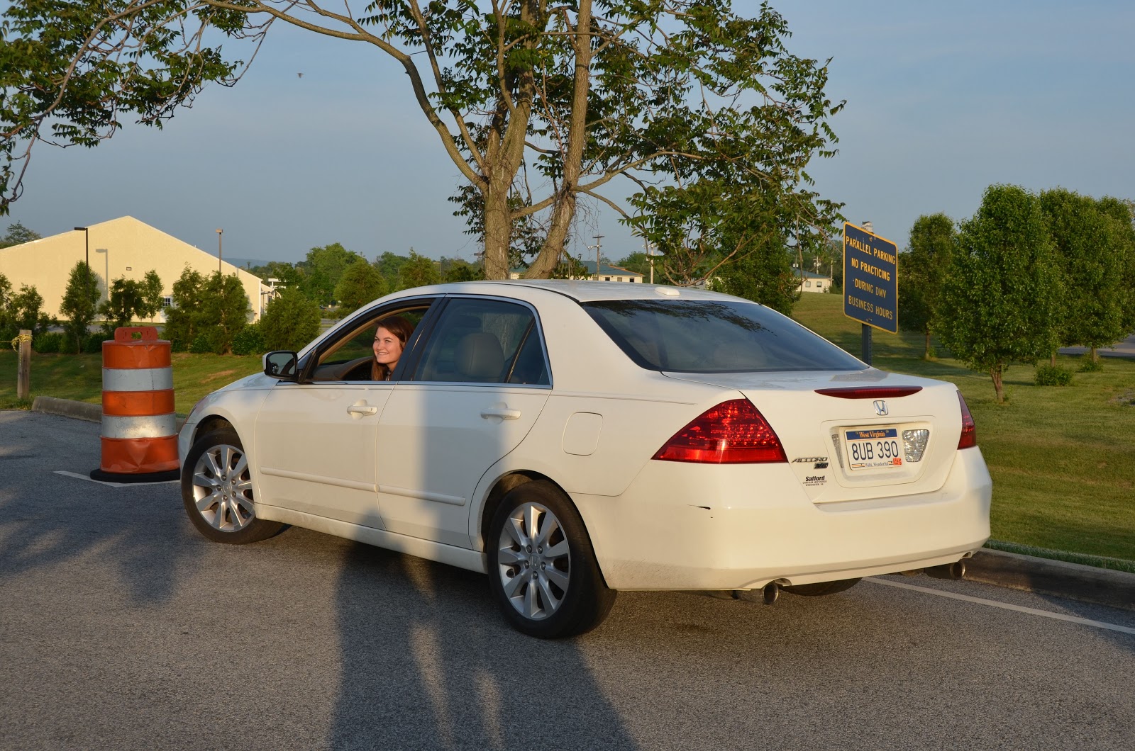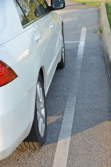 One of her friends commented that she needs to be in between the curb and white line. We practiced thinking she needed to be 6″ from the white line….SCORE!!!