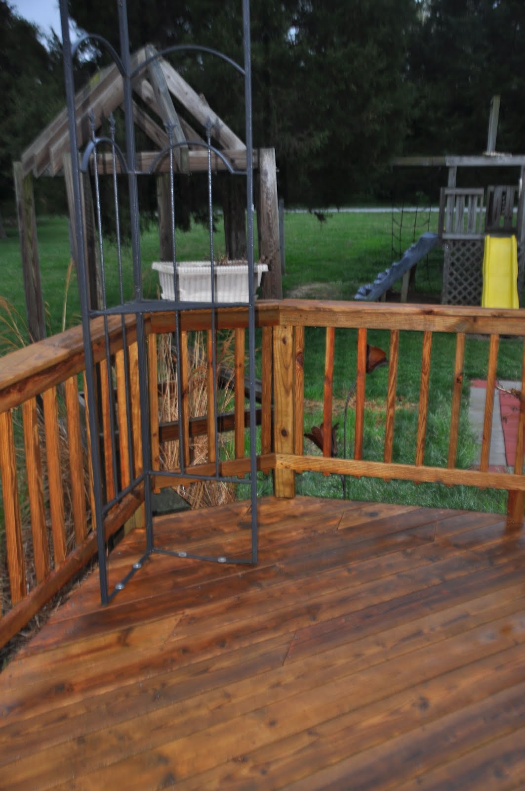 well, not really but here’s the scoop…… Our deck has been neglected (for 14 years!)…..but I love spending evenings out there with the tiki torches, campfire, music playing and maybe even a nice bottle of wine.