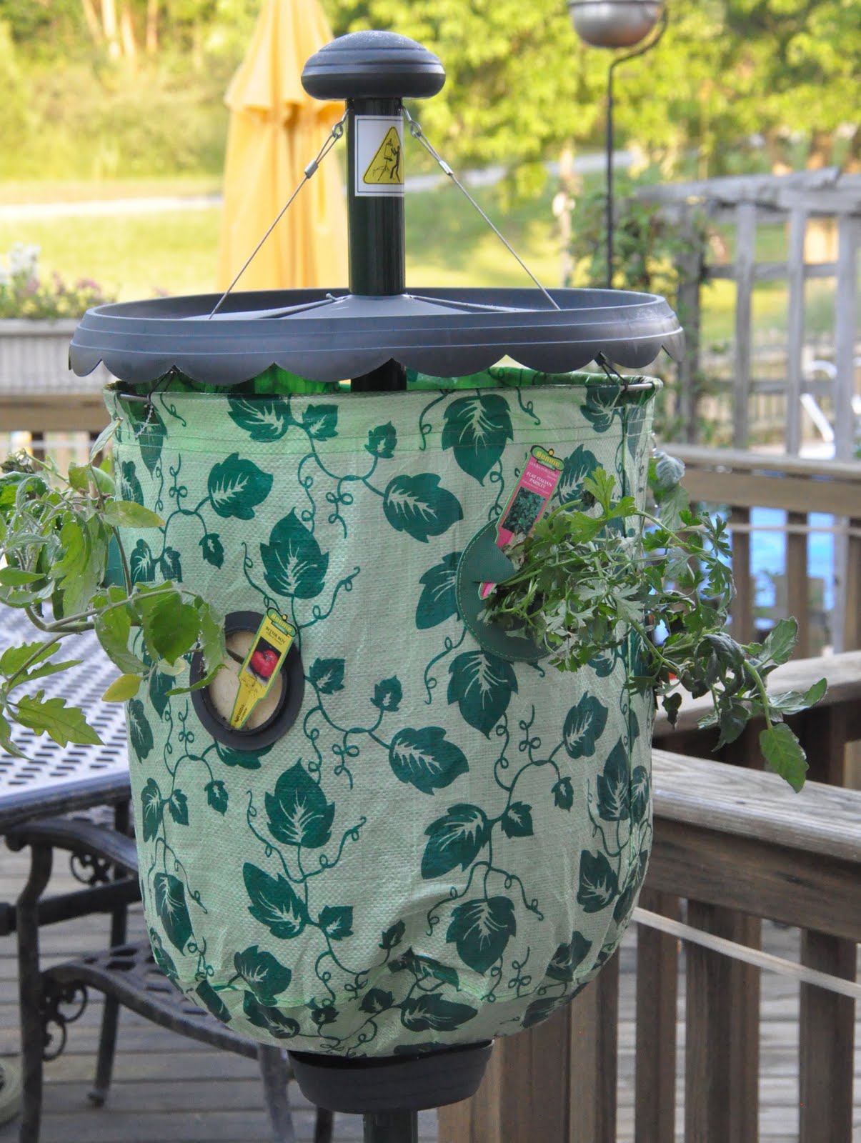 Yep – go ahead, you can TOTALLY laugh at me! But we love tomatoes and have never had luck with plants. So….the Topsy Turvy sounded like the perfect solution, lol. And if I’m going to do it, I’m going to go BIG. We got the tree, ha! holds 4 tomato plants and 2 herb. Yay us –