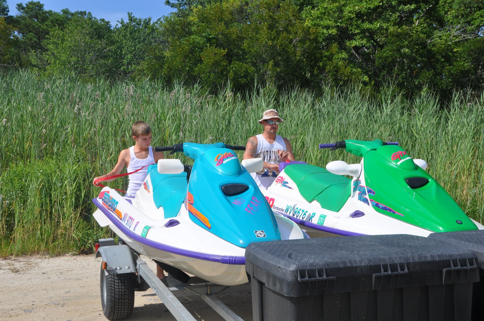 A few months ago when Cierra heard we were trying to sell our jet skis, she was pretty upset. She likes them. Didn’t want canoes. Wanted to take them to the beach….this year. Besides, they are older than she is. So – here we they are….with us…..and we’re ALL glad =)
