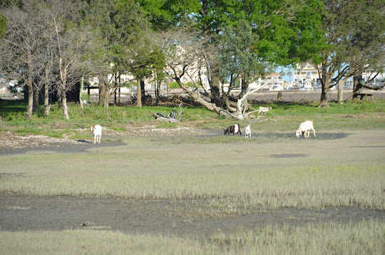 it was another beautiful afternoon and as we were walking on the boardwalk, a Goat Island sticker caught my eye. After being explained that goats really lived here and were just brought back from being at the farm for the winter