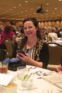 we found our table and then scanned all the items as part of the bidding auction, silent auction and bingo prizes. LOTS of good stuff. And this girl was a riot!