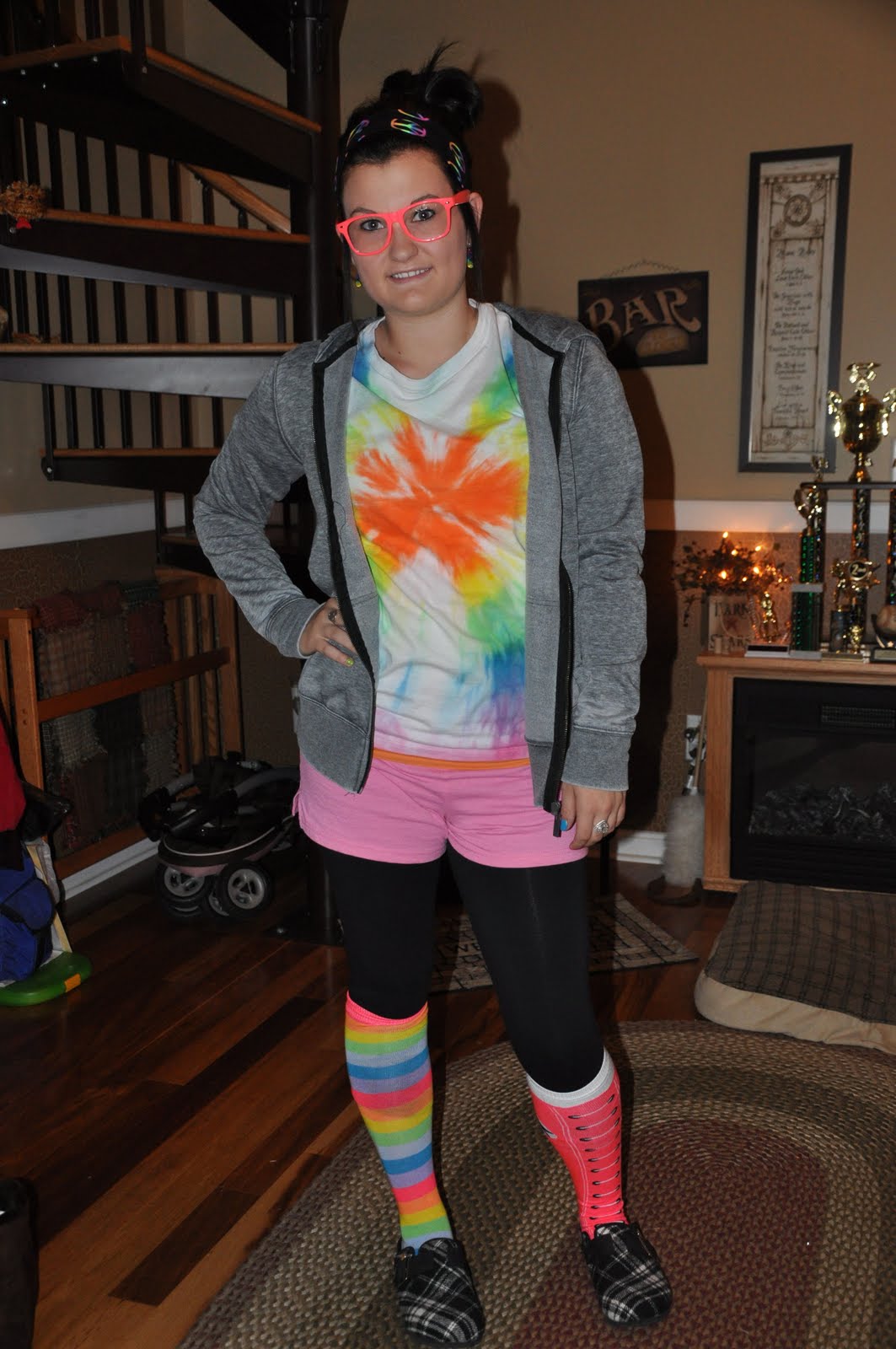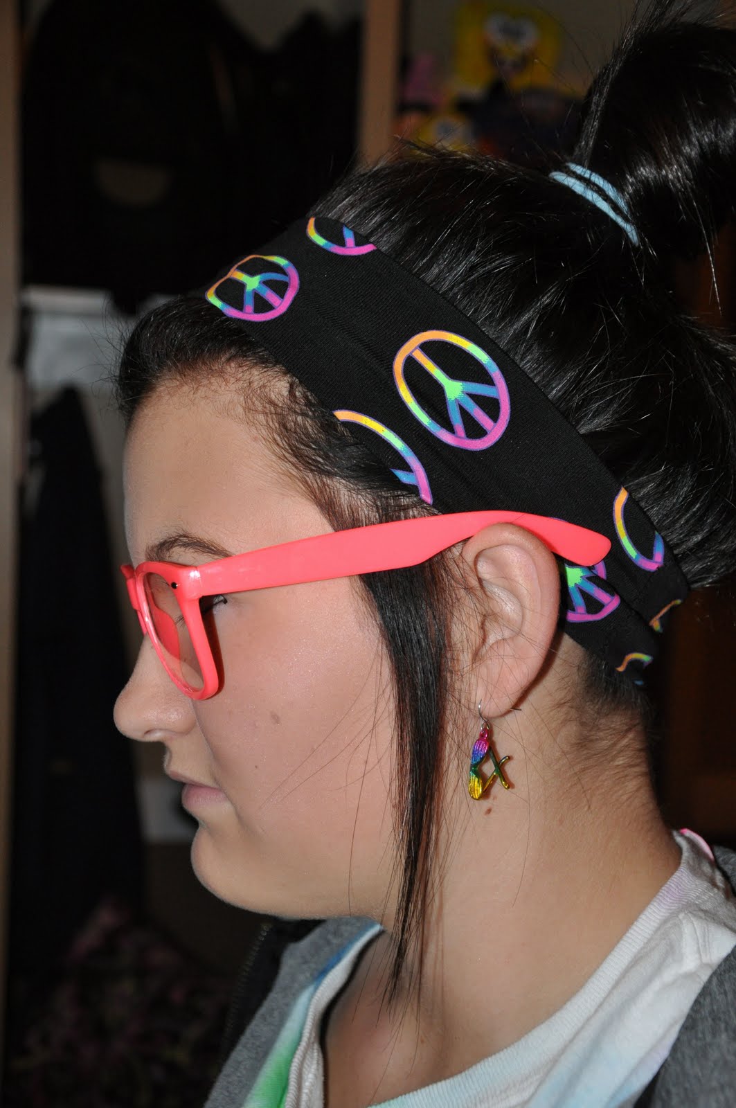 It’s Spirit Week at Cierra’s high school this week and she LOVES to partake in the activities. Today just happens to be ‘crazy’ day so we shopped last night in search of silly, wild, cheap stuff. This is the end result –