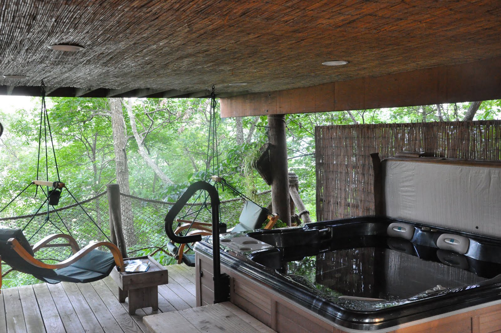 After a few hours on the lake, we head back to Junglewood. Upon our arrival, the owner approaches us and asked if we ‘got the note this morning?’. Of course we say we did and he goes on to share that the Game Commissioner had just left. Basically the bear was right around our treehouse while we slept in that morning. It’s a 400 lb. black bear they have named “Boston”. He has been coming each morning and evening and the owner was actually ok with it. He explained that Boston mainly keeps other bears away. Unfortunately the neighbors aren’t so happy and want him taken care of. There was talk of putting a trap out to catch him and if we didn’t see him that evening they were fearful that was what had happened. 🙁