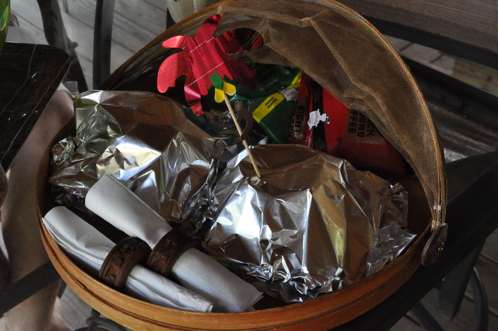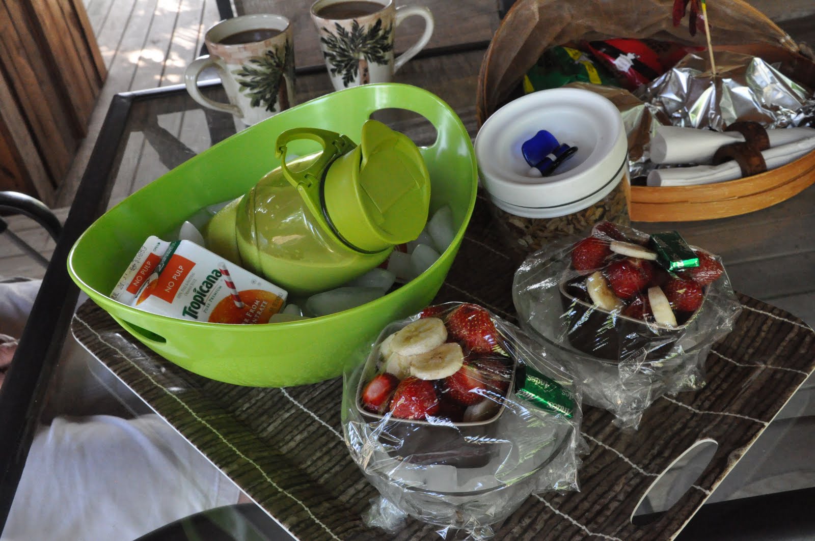As part of our stay, we had to let the owners know what time we wanted breakfast. We chose 9:00 a.m. in order to have a few cups of coffee before it was time to actually eat (plus, we could sleep in a bit..wink wink). So just about 9:00 we heard the ‘jungle’ music playing so knew it was safe to head down to the patio. (it felt like Christmas, lol). Once down the steps what must we see laying on the table but this…
