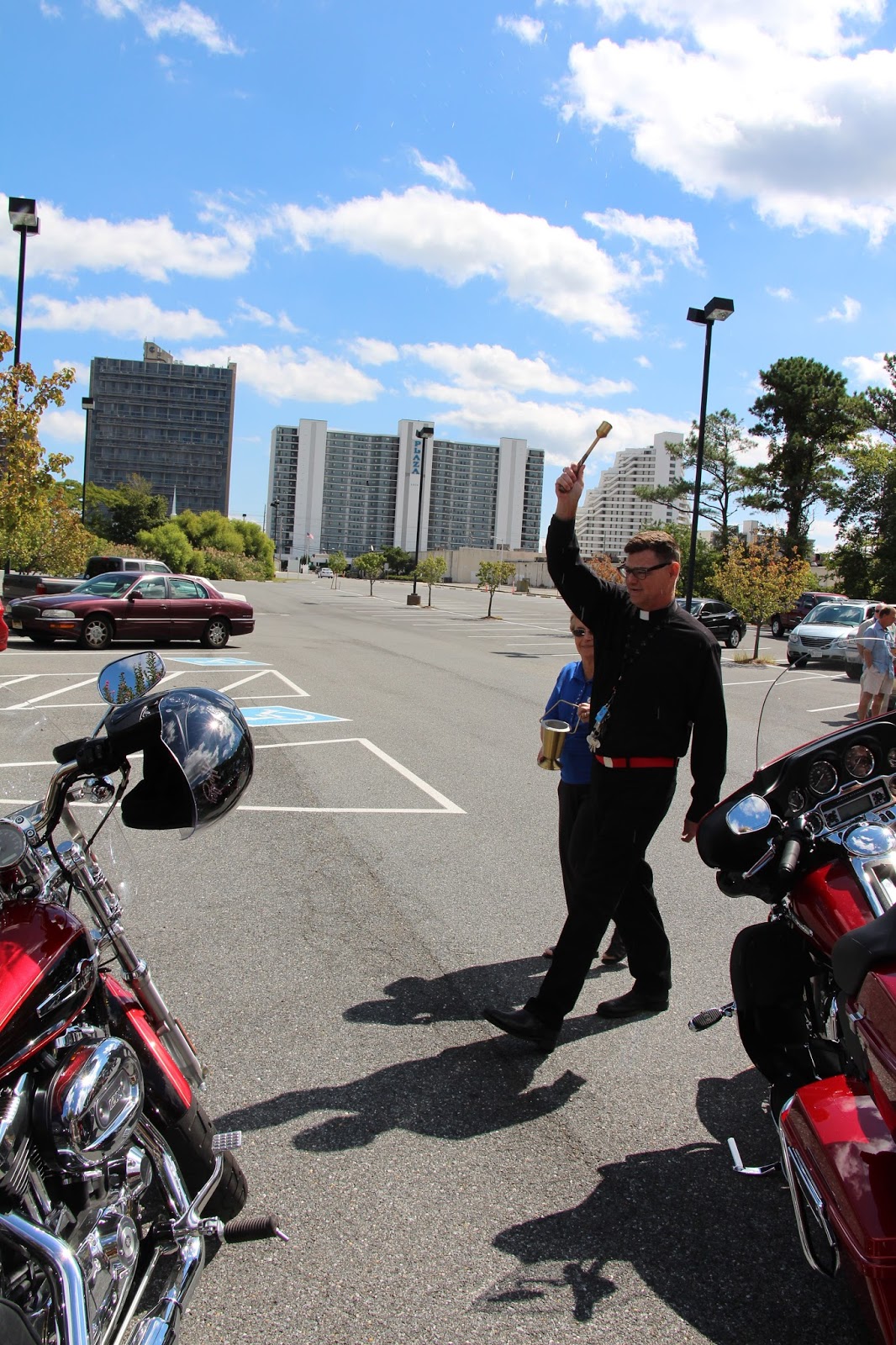 It was pretty cool – the priest prayed then shook holy water on each bike..