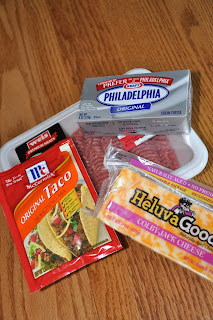 soften 8 ounces of cream cheese – then spread over ground beef mixture