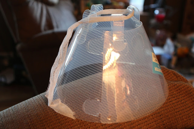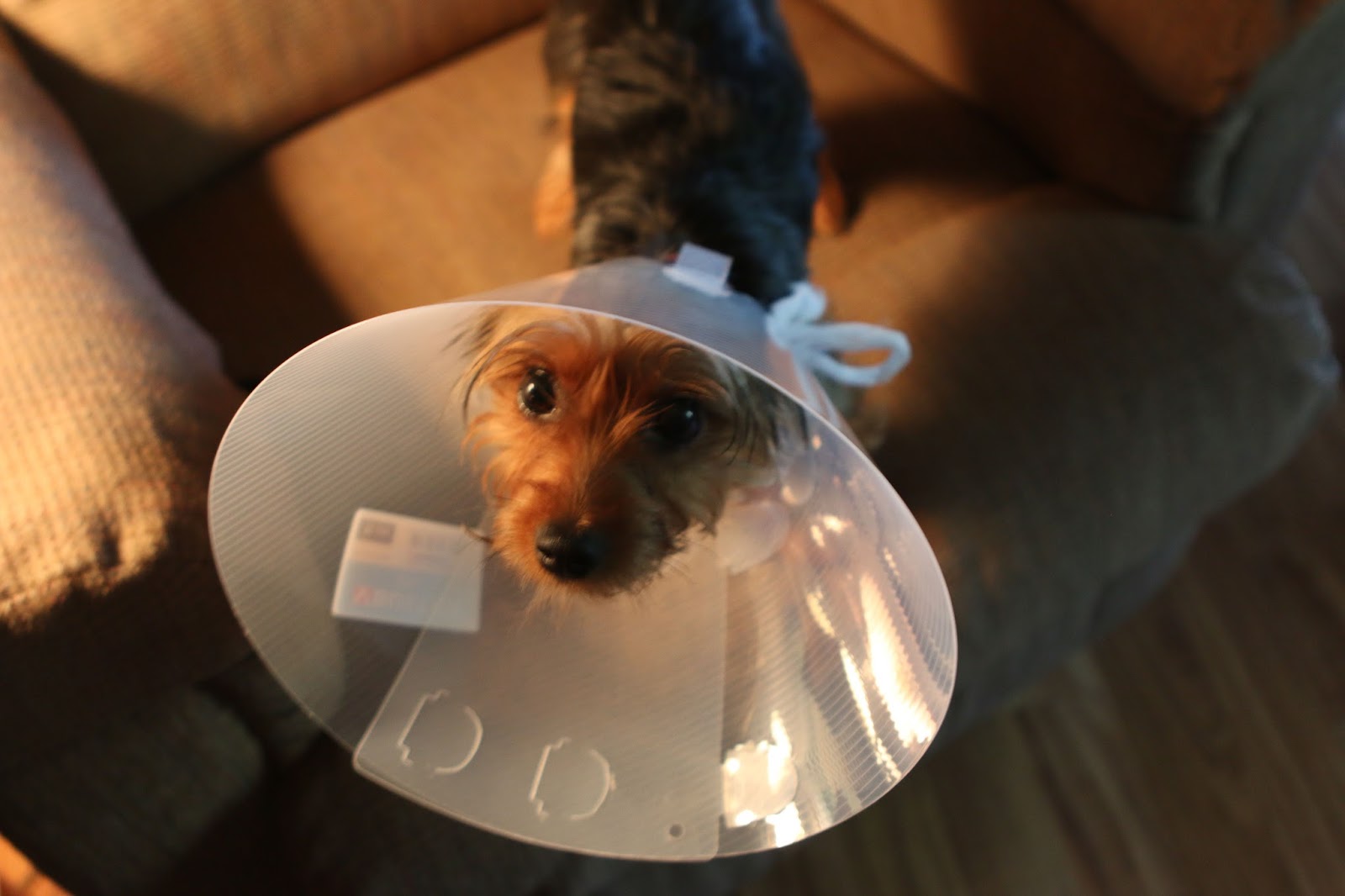 Equal? It equals Bella with a cone recuperating from surgery to spay her and microchip. Poor Bella….