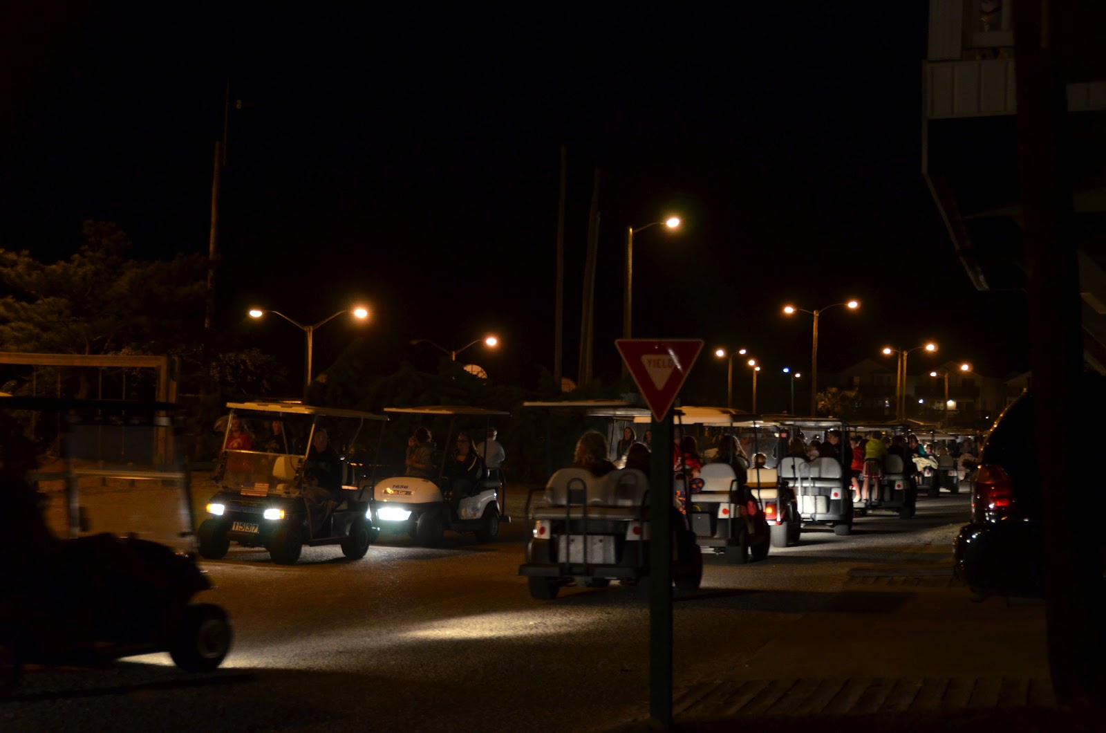 Everyone hopped on their golf carts and headed to ‘the strip’!