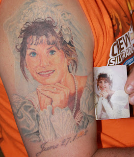 ok, this one is Ronnie’s favorite. He had that picture above his visor from vehicle to vehicle and it finally just wore out. He has always loved it so he decided that he wanted to preserve it forever. He had been planning this for some time without me knowing then got a call from his tattoo artist requesting that he have it done during one of the Tattoo Shows. So, he did just that. Fourteen hours later, and six hours of travel, he accomplished his goal. So, the inside joke now is that whenever I travel, I’m really still here. The kids can tell me good night and I’m always with him. While I wasn’t a fan of having my face on his arm, the concept is really cool.