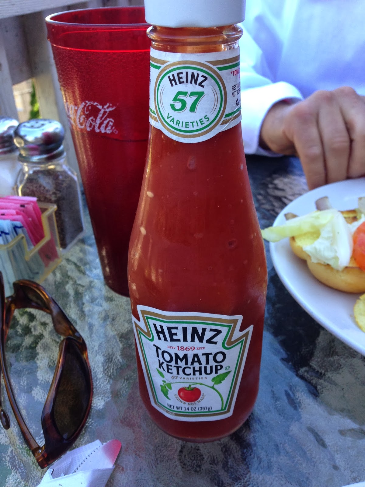 it’s all about the ketchup bottles. And the ketchup bottles just sliding right off the table.