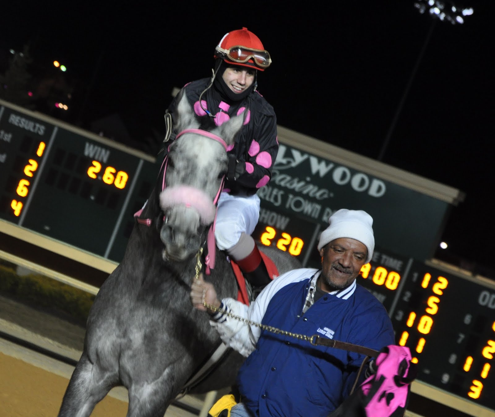 And tonight – another GREAT night. We attended the 4H family dinner then on a whim, headed to the track to see J’s horse in the 4th race. And oh are we glad!! Regional Expertise pulled it off! Congratulations J (and Ash =)!