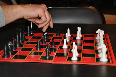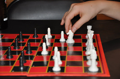 Chase has really started enjoying Chess. He played a year or so ago but never really ‘got into it’. Then a few weeks ago the Boy Scout Troop played and he liked it alot! The other night when I was putting clothes away this is what I saw this….
