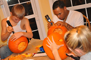 Back at the ranch, LOL – trying to work around everyone’s work schedules is difficult so Britt still wanted to carve pumpkins. While we were in Frederick her, Brandon and Chase picked up enough pumpkins for everyone to carve (thank goodness for Wal-Mart)! We didn’t have J, Ash and Kayden but everyone else got their pumpkin and set out for some carving!