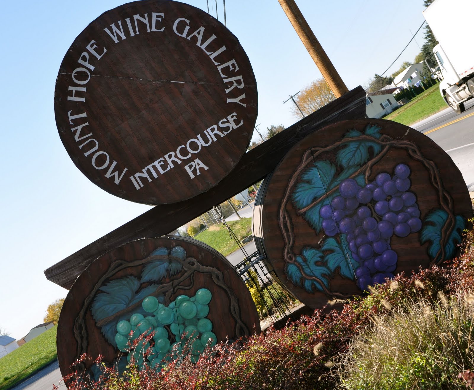 We had a yummy lunch at Bird in Hand Restaurant then started to head home. It was a little later than we planned which meant traffic was heavy. We detoured to a winery I found on my Blackberry and for a little bit I wondered if the Garmin was going to take us to one of those famous ‘dead end’ destinations. The winery ended up being in an industrial park and was nothing more than a metal building. Pretty interesting once inside – they had Margarita Wine (never heard of this before) and several other whites and reds. We didn’t end up buying the Margarita one but did buy Queen Anne. Not one of our favorite wineries but definitely glad we stopped.