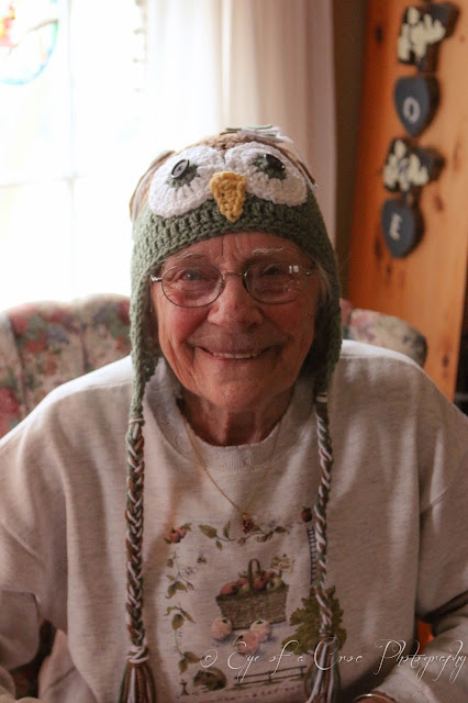 Then home to get settled in. After a good night’s sleep, we decide on Dirty Harry’s for breakfast. (no pics) then off to visit with Nanny – She is so funny =) She loves Owls and actually liked her hat –