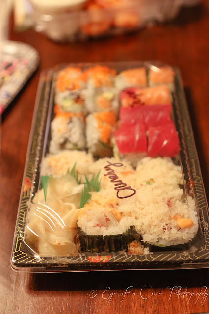 Sushi from Blue Fish and dinners from Crab Bag. Our fridge was a little bare (we calculated it being cheaper to eat out for two the grocery shop. Of course Granny and Granddad helped with that decision)