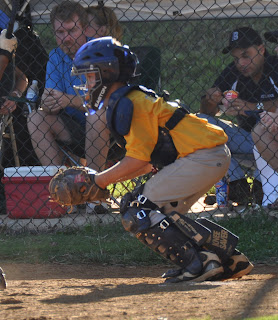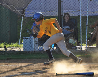 After church we headed over the mountain for a double header against the Burke Bulldogs. Things didn’t seem to be starting off in our favor – the air conditioning in the car wasn’t quite as cool as it should have been, the ball field wasn’t the easiest to find and you had to walk a country mile from the parking lot with all our ‘stuff’. The umpire never showed up for the 2 o’clock game so….around 3:00 the game started with a parent of the other team calling the game. Uh oh….in ‘our opinion’ he blew the first two calls which put us behind. We weren’t playing as well as we typically do but all in all, it was competitive baseball and ended in extra innings with a tie.