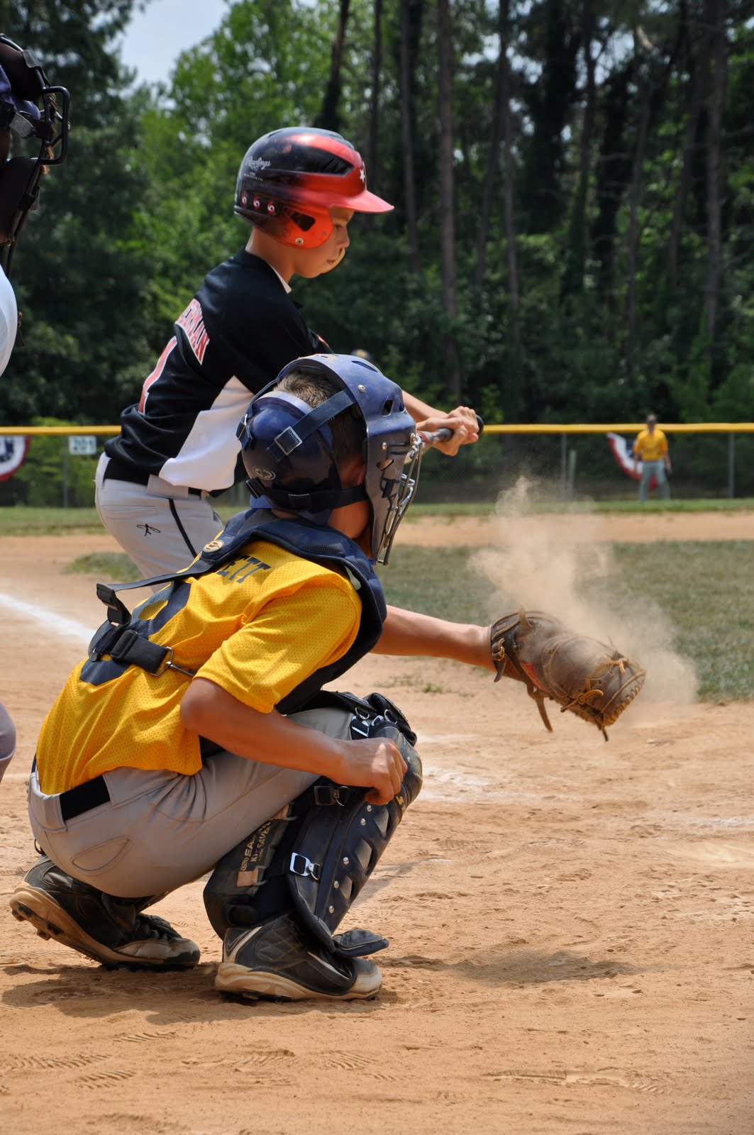 (he didn’t want to look too excited, lol!)When he wasn’t batting, he played his ‘usual’ position – love it when the dust flies out of the glove, haha…