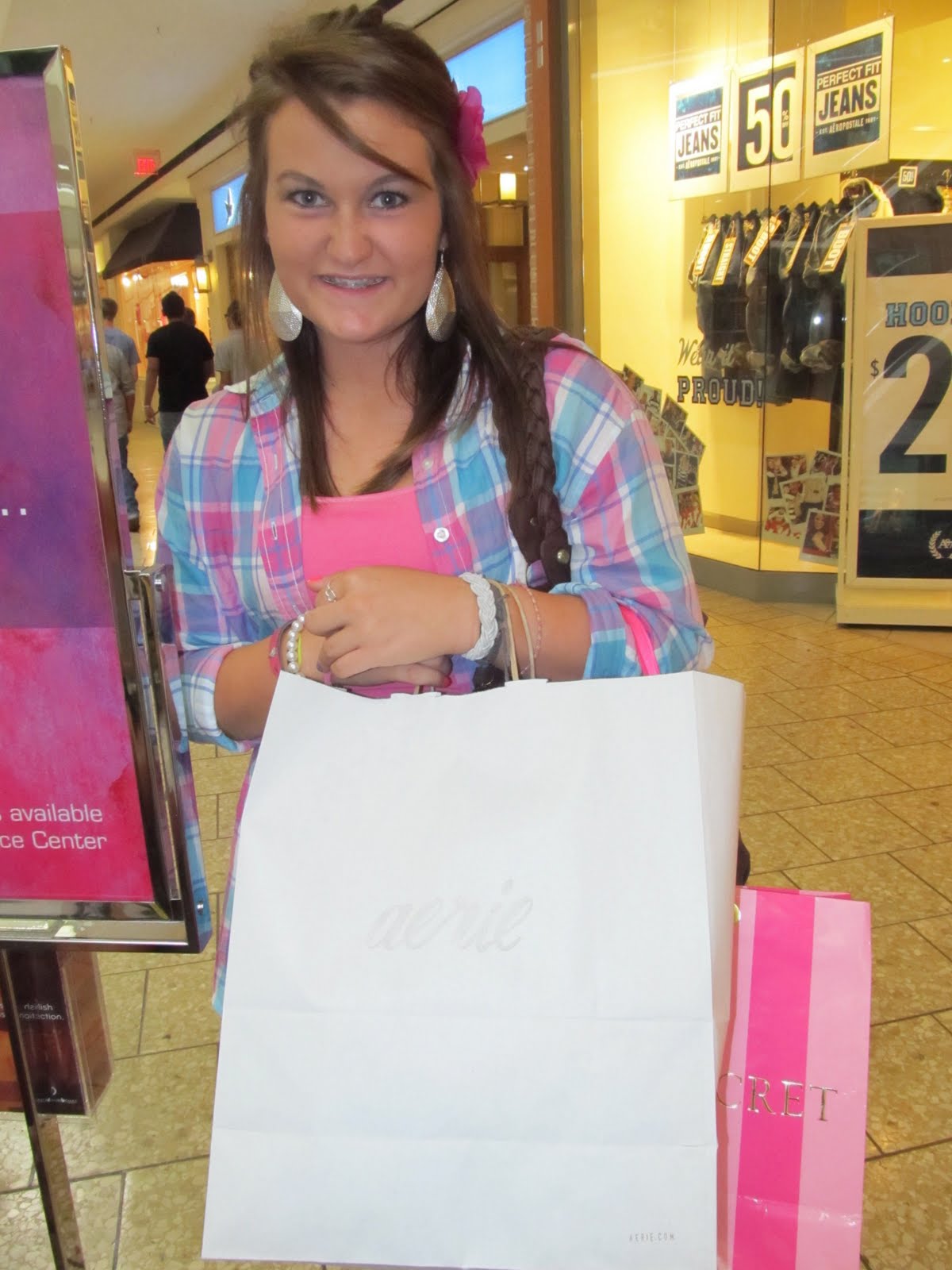 Chase pretty much had in his mind set as to what he wanted….one pair of jeans, 5 shirts and one pair of shoes…so once we hit Hollister and he got one pair of jeans and about 10 shirts (they were on sale), he said he was DONE! Well, Cierra wasn’t so while he and Ronnie sat in the mall, Cierra hit Aerie –