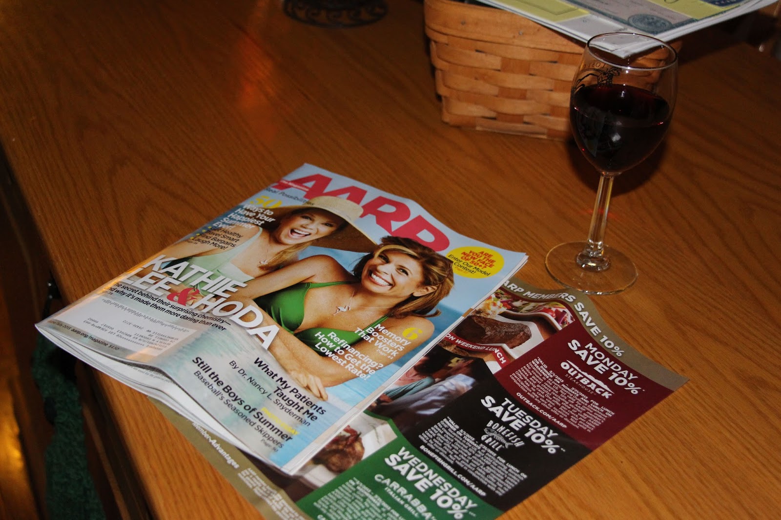 This evening I’m home alone. Dinner is going. I have put things back in order and straightened the kitchen and dining room. I go get the mail and my latest AARP magazine (yes I am OLD).