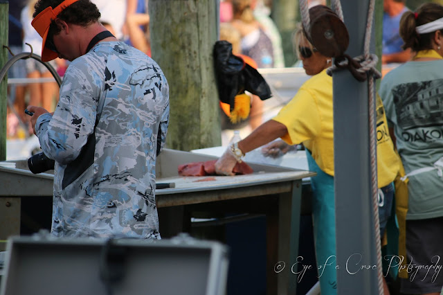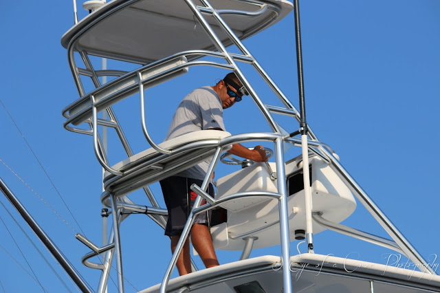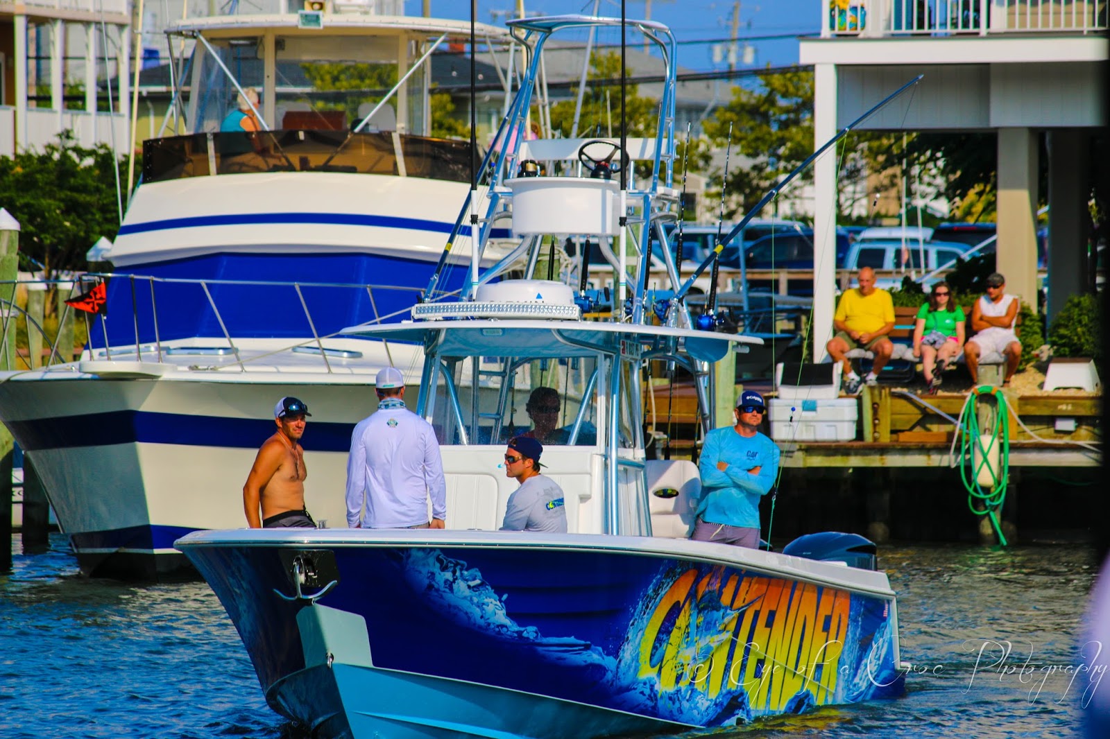 we get there around 5 and missed a 86 lb. white marlin come in. There was a nice breeze and a LOT of people. Pretty boats –