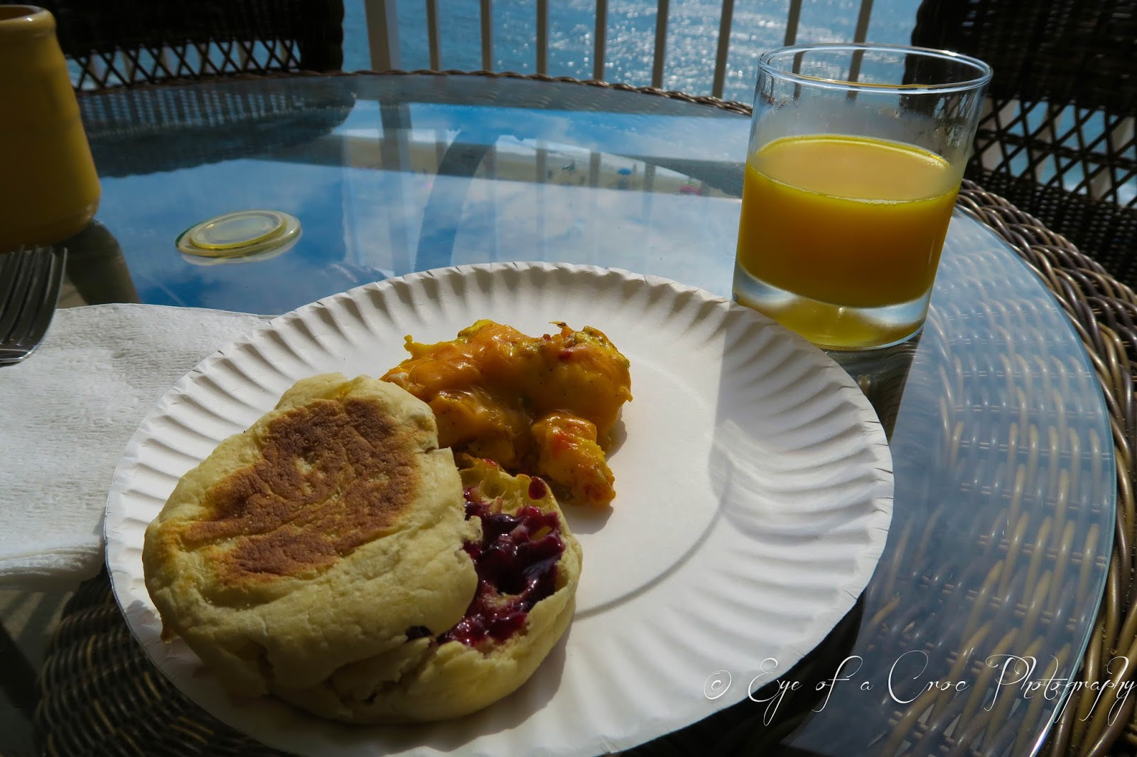 After watching the sunrise Sunday morning, it was breakfast for us. Leftover scallops and shrimp make a perfect omlet.