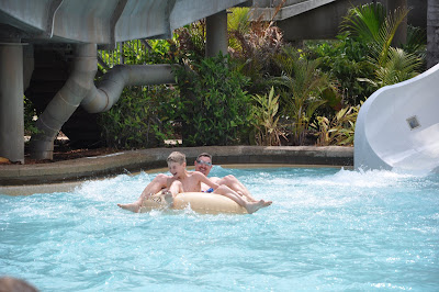 We hit Typhoon Lagoon today. This was our first time visiting this Disney park. It was as expected; beautiful! Completely tropical and twenty times the size of Seacrets in OC. The wave pool was so powerful it was scarey. Chase and Ronnie had lots of fun but Cierra and I ran when the wave started. When the roar souned, we were outta there!!