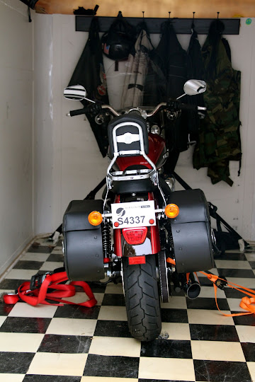 The color on Ronnie’s Harley is Merlot. How fitting! So, Merl is home =)