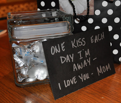 Bev, what a cute idea ! I love Hershey Kisses and think my family would love a kiss from me each day! BUT I NEVER LEAVE !!! Ha ha