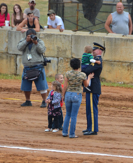 And once over the hill (and out of sight/sound), we were told that really wasn’t the case. You see their Dad had been in Afghanistan since December of 2010. One of the children he hadn’t even seen in person. And, he was home! We were going to witness the homecoming. This is something I only see on TV. Honestly.
