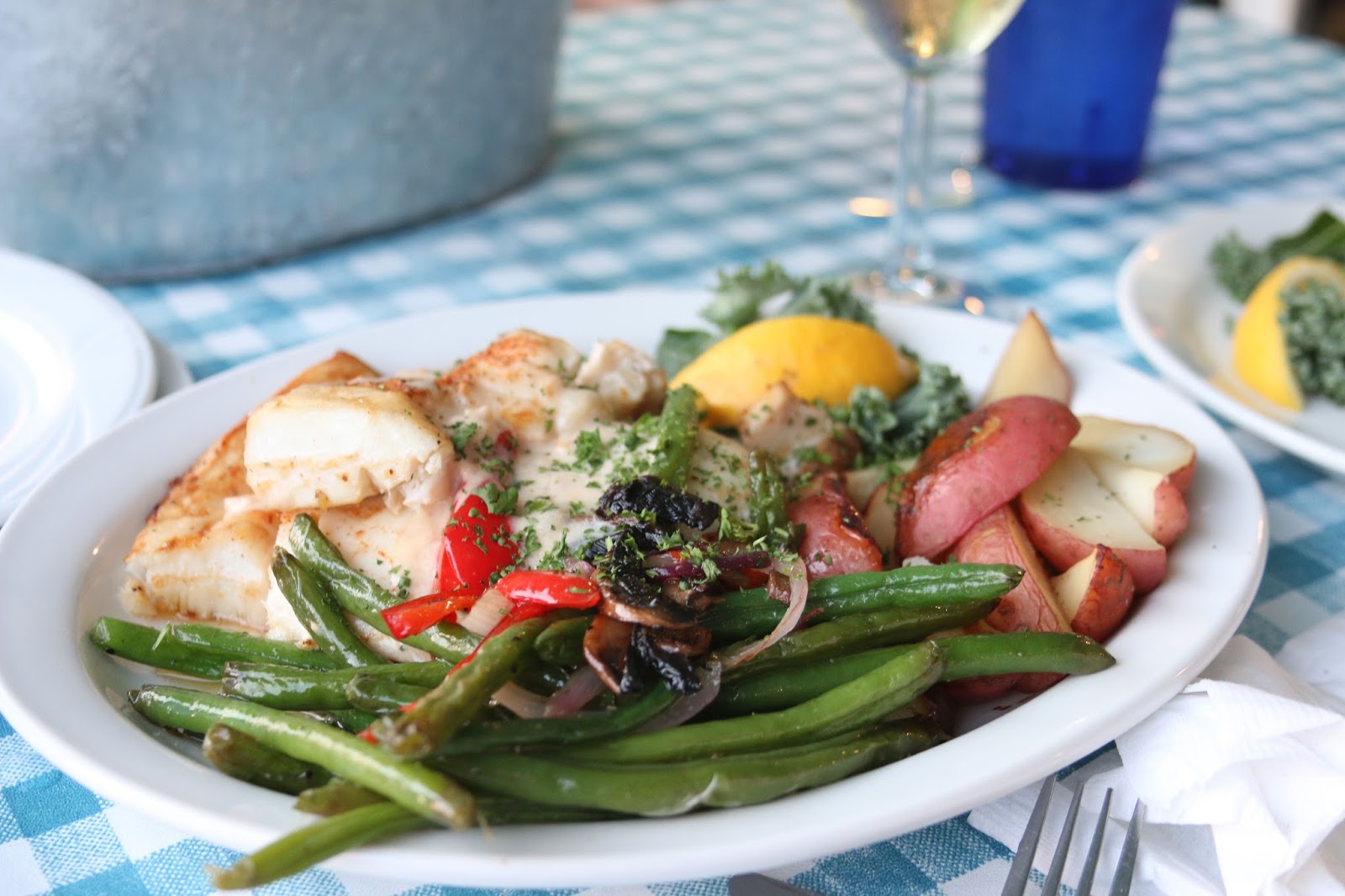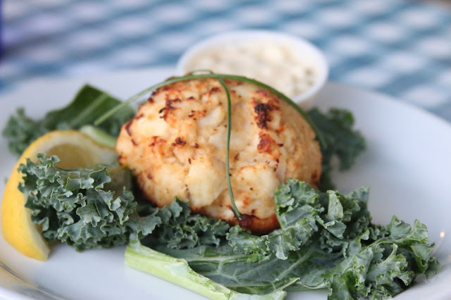 Our food came and it was about as good as the sunset. Rockfish dinner with a crab cake ‘add on’.