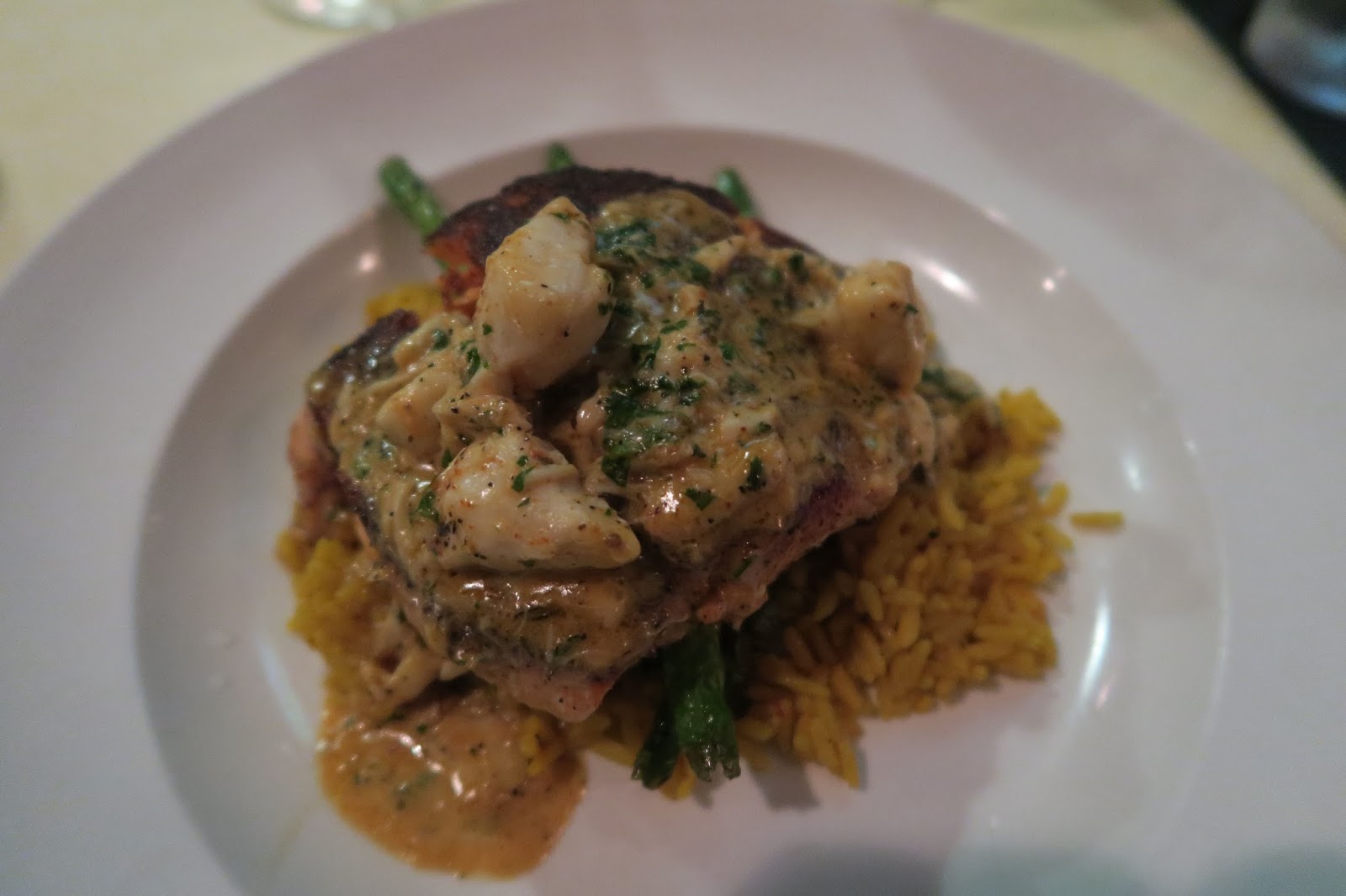 and I chose the fresh blackened salmon – Yes, I was an expensive date, LOL