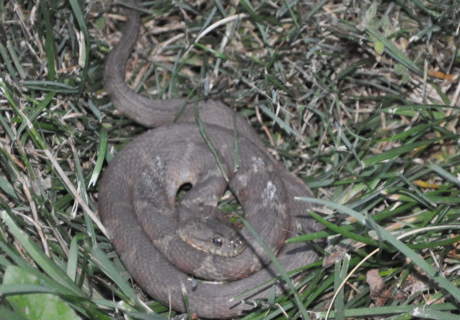 When we backed into the driveway tonight after Chase’s practice, Java was in the front yard circling something. My first instinct was a toad. I see them often in my flower pots. Chase and I headed over only to find this…