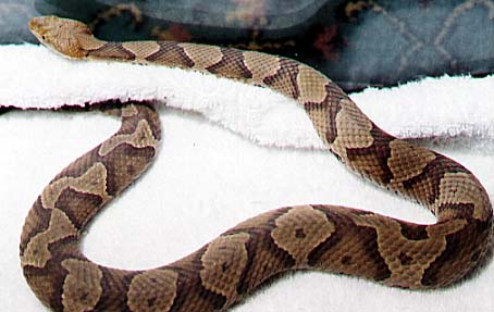 I googled pictures and yep! it was definitely a copperhead, our’s was just a little more dirty and not so bright. Geez.