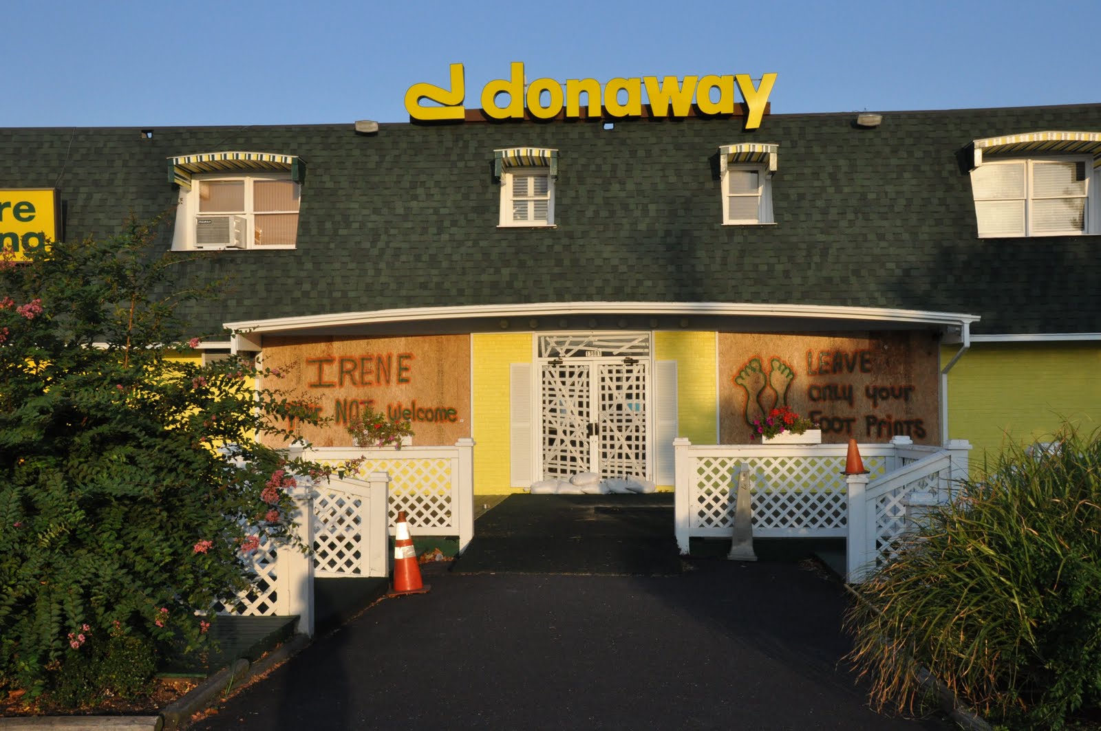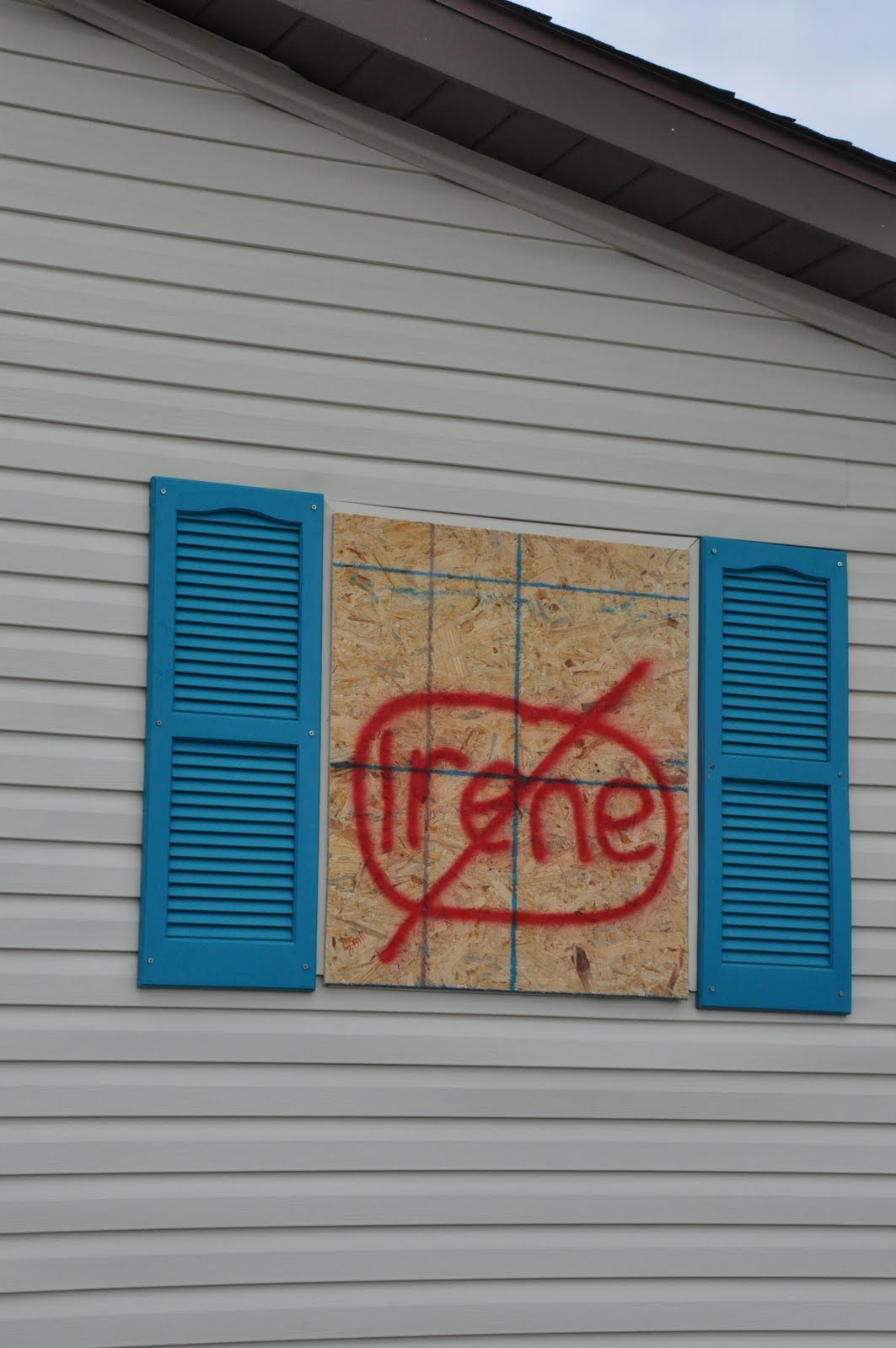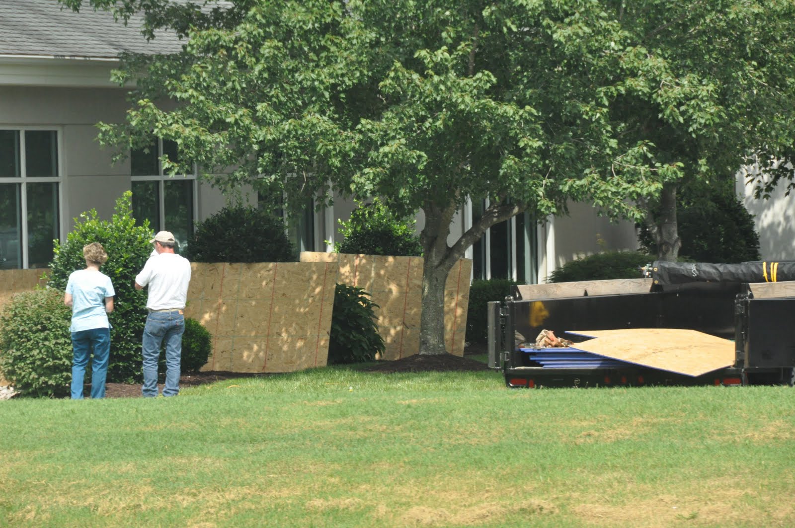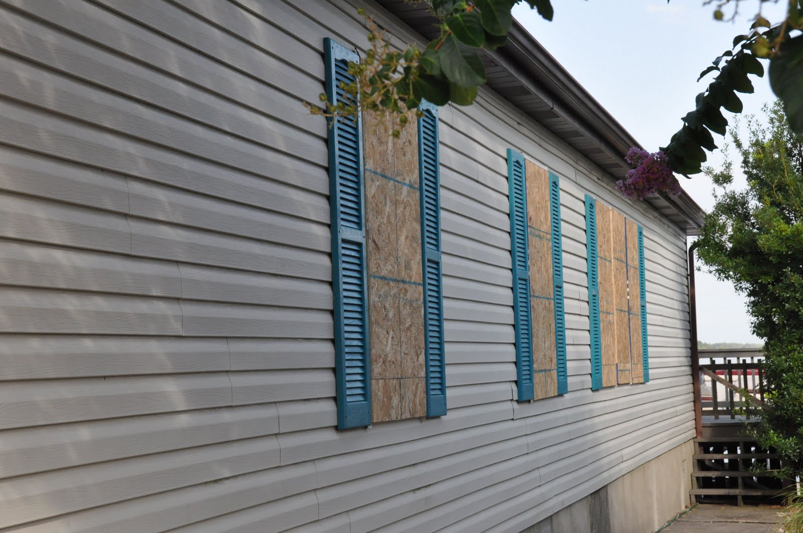 So here’s the scoop – On Thursday with the threat of Irene making her presence in Ocean City and knowing our jet skis and Mom and Dad’s boat may not be as secure as we would like AND us wanting to take precautions with windows, doors and the house, Ronnie and I headed to the Eastern Shore with our trailer full of plywood and all the necessary tools. We had already heard there wasn’t any plywood to be found on the island and the clock was ticking. If we didn’t get in by midnight, we wouldn’t be allowed in. The mandatory evacuation was starting at midnight.