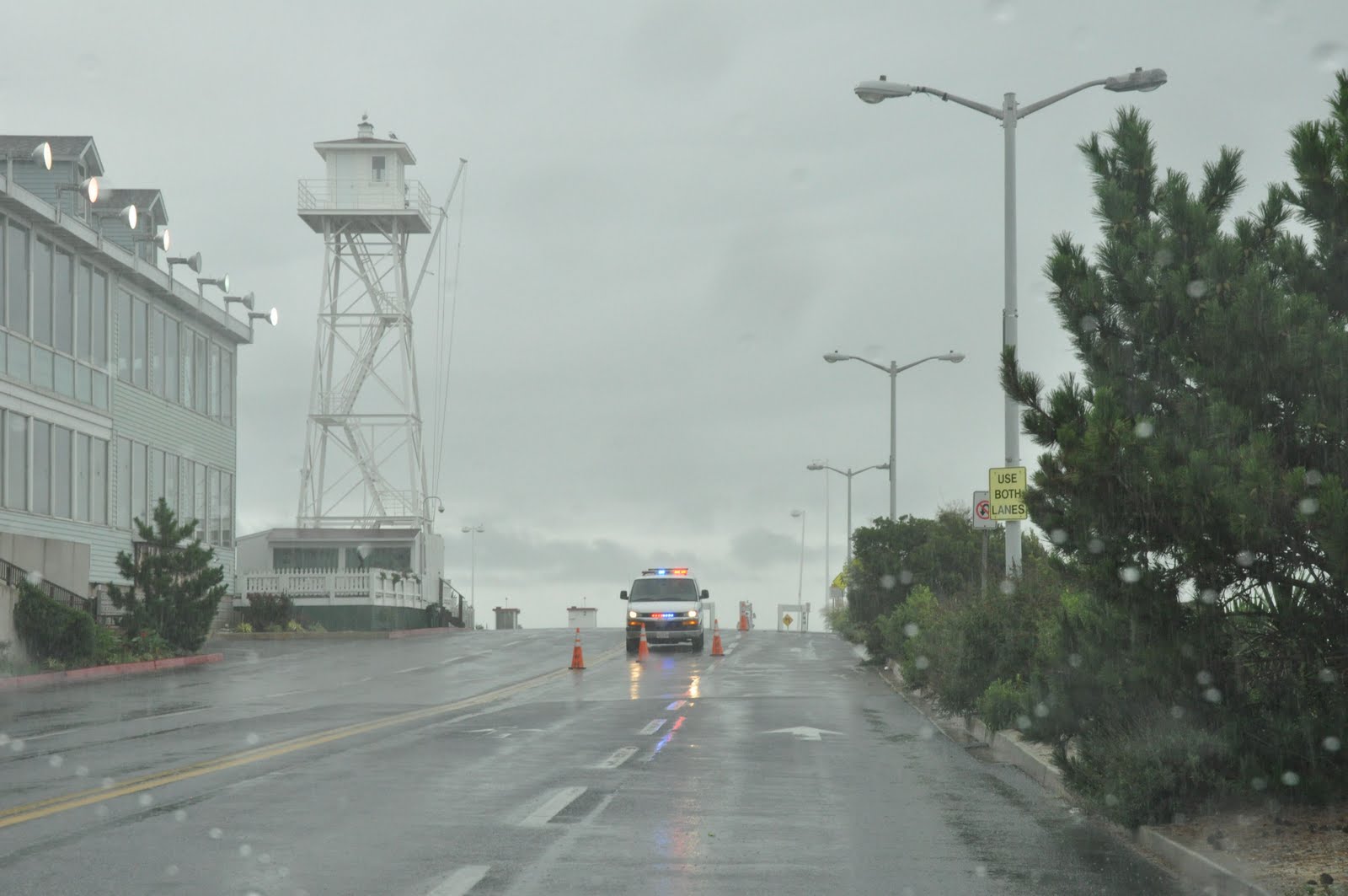 and honestly, I’ve never seen so much traffic coming at us. Boats, cars, trucks, RV’s, and it seemed really weird to see the OC buses way out there, full of people. Eery. These signs weren’t very comforting either….