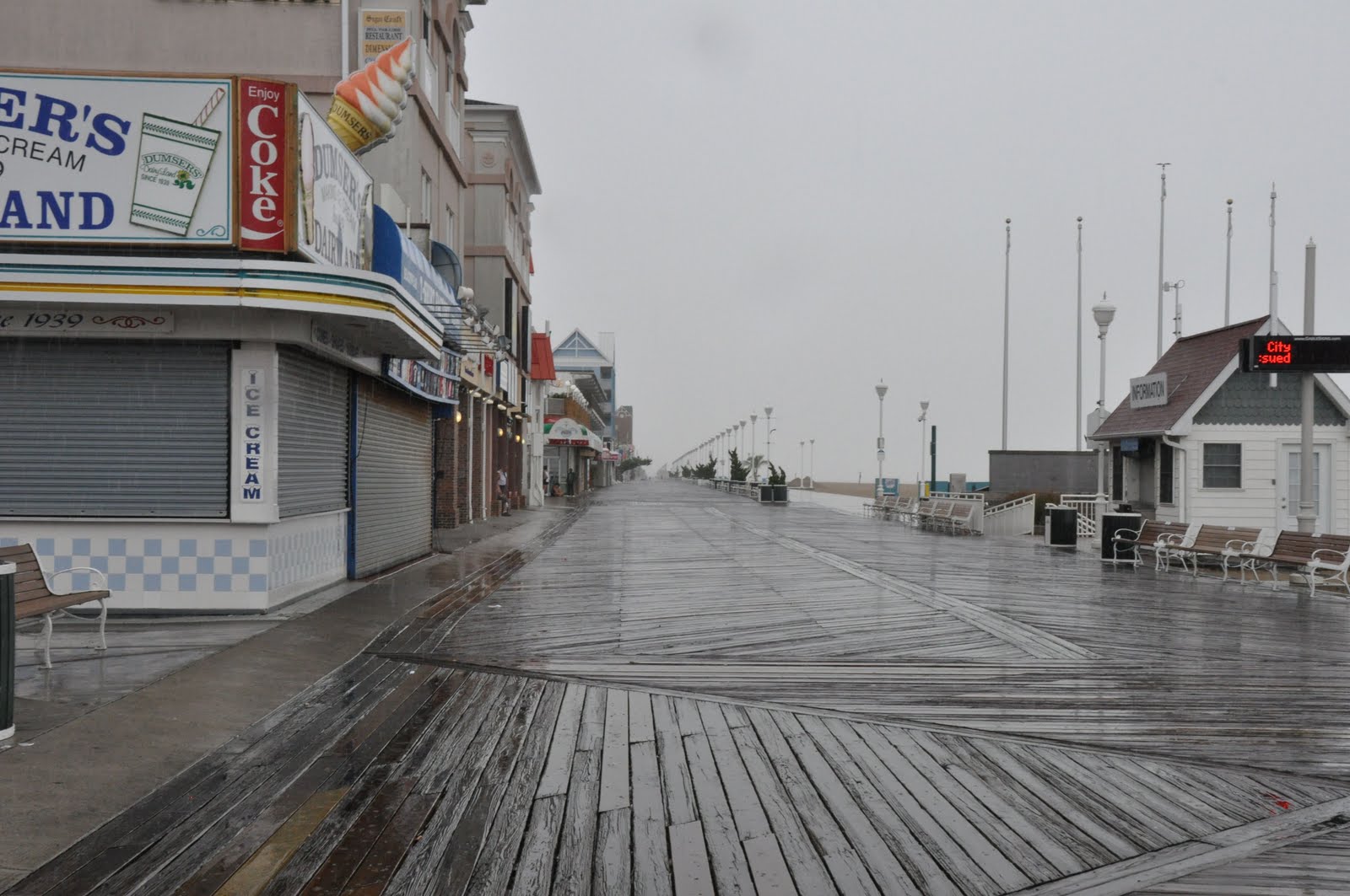 But if you’re watching the Weather Channel today, Ocean City is like a ghost town; only 300 people on the island (because they didn’t want to go) and businesses that look like this: