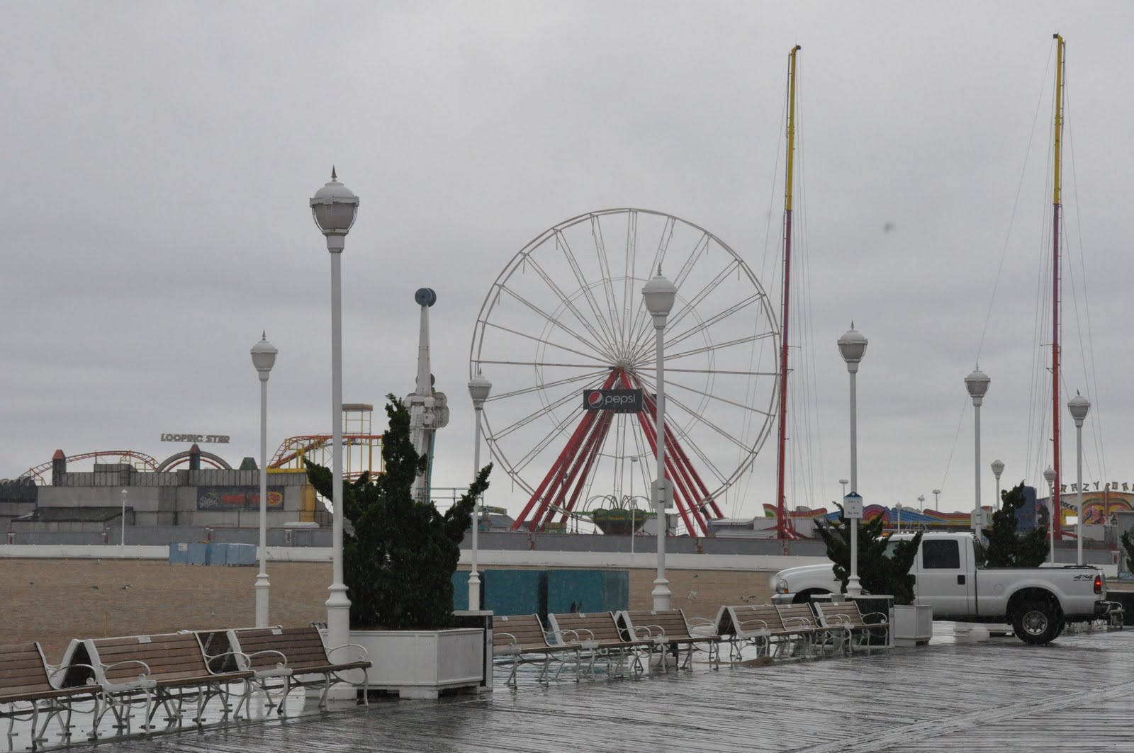 And the cars have been removed from the Ferris Wheel –