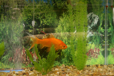 At Christmas Chase got a 75 gallon tank which made Renegade even happier. The goal was to have a few other fish like this pretty goldfish –