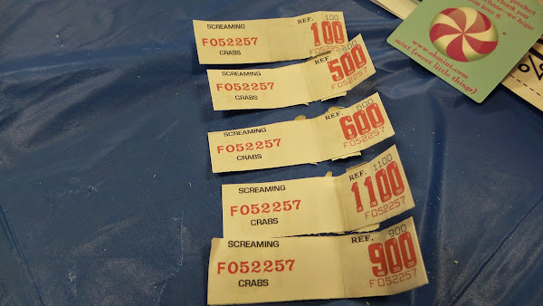 We did finally get eliminated but not until there was less than 60 remaining. Not too bad for our first time and only 4 tickets out of 400. I didn’t understand how it worked but the ten remaining numbers came up front –