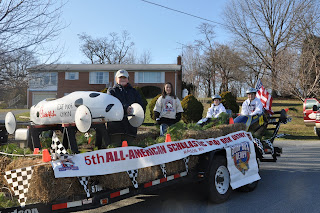 Chase is riding in his runner up Super Stock Champion Soap Box Derby car along side Nick Falso who was this year’s Super Stock Champion. Nick’s sister Grace was also onboard. She was the runner up in the Stock class this year. Ryan Cole and his dad, Frank were participants as well. Susan (Ryan’s Mom) was inside the truck with us where it was nice a toasty. The Cole family does a lot of work ‘behind the scenes’ all year long to help prepare for the Spring race. 2010 will be the the 6th year for the Ray Miller Soap Box Derby. This event continues to grow within our community. This will also be the 3rd year for Chick-fil-a sponsoring the race. It was pretty funny today to see the crowd so excited about Chick-fil-a! Many times I think they actually thought it was a ‘EAT MORE CHIKIN’ float instead of promoting the local Soap Box Derby race, LOL.