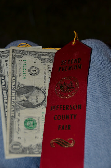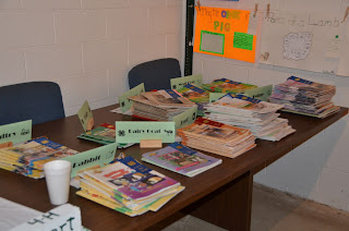The books are stacked up for pick-up. Yay, two blue ribbons.