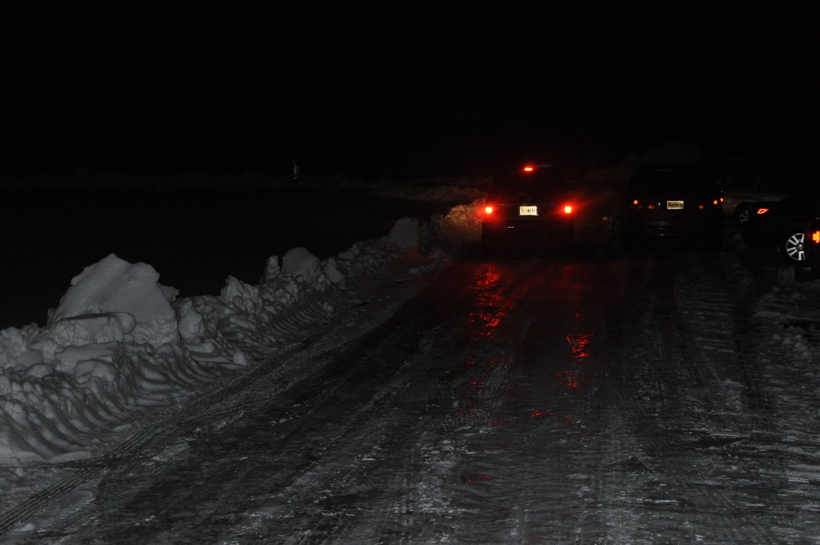 The night wrapped up which meant it was time to head out. Wow…I see car lights that appear to be stuck. And, the road is really icy –