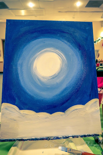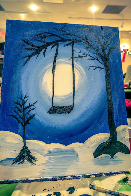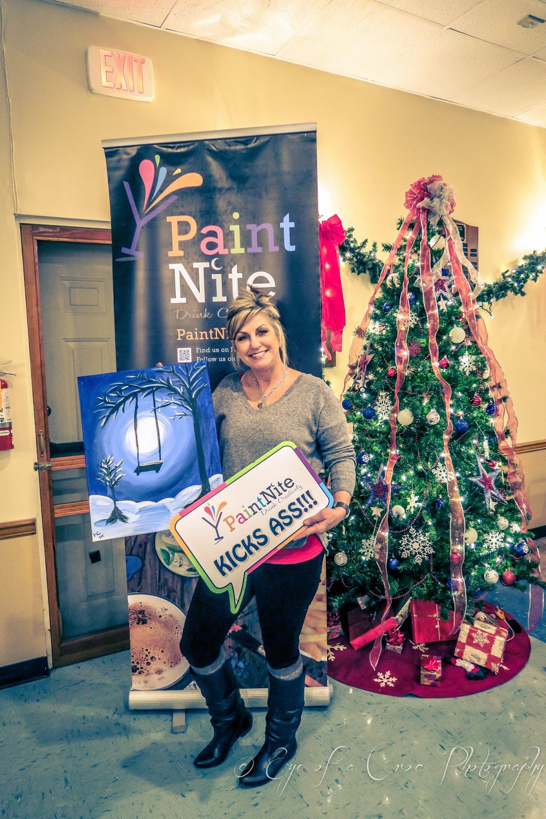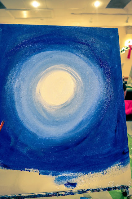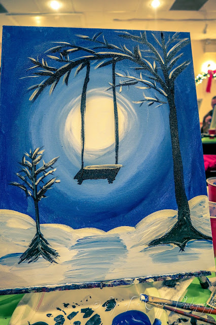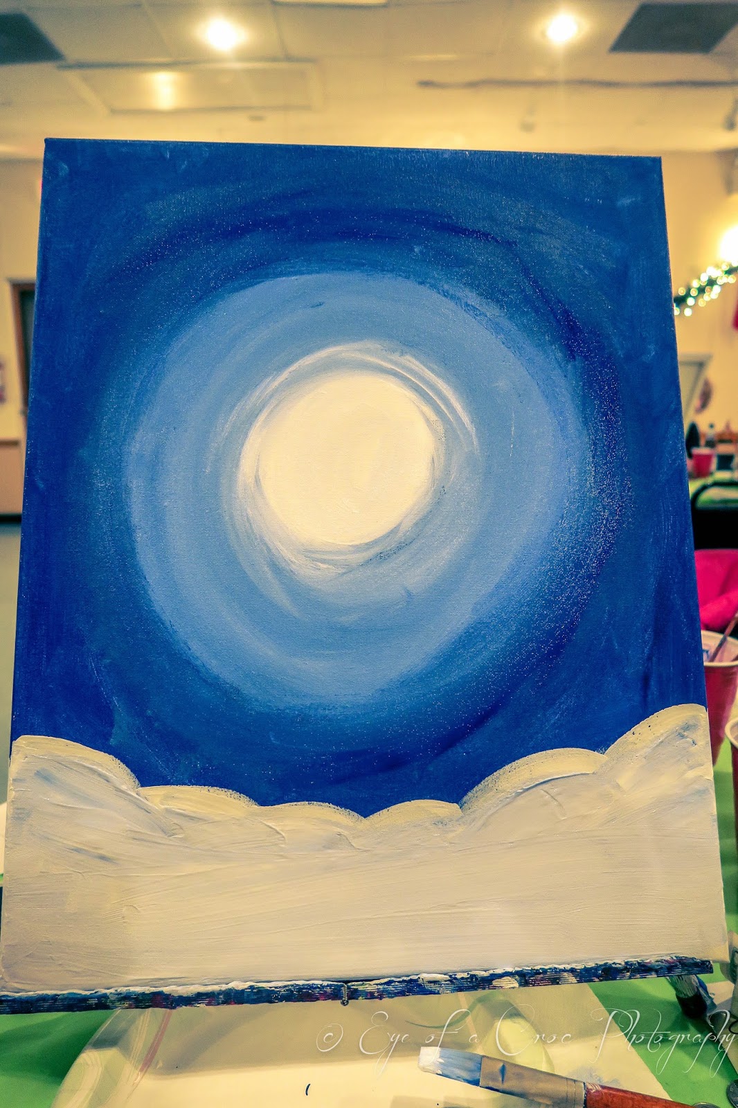 OK, as promised (at least to Nanny) I have to share Paint Nite. I will admit, I was a little skeptical. I am not artistic. I cannot paint. I don’t follow directions well. Add all that up and geez……disaster. But….NOPE. The ladies that entertained us for the evening knew just what to do. Here’s some pictures –
